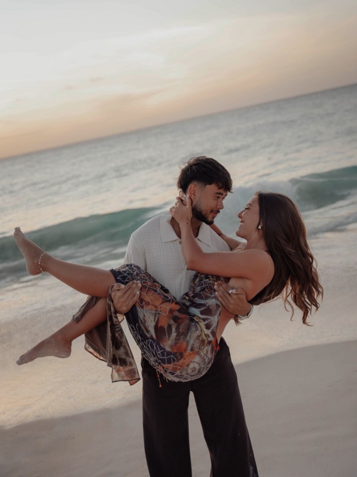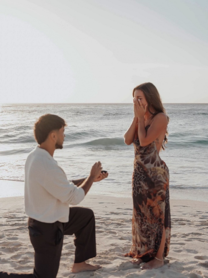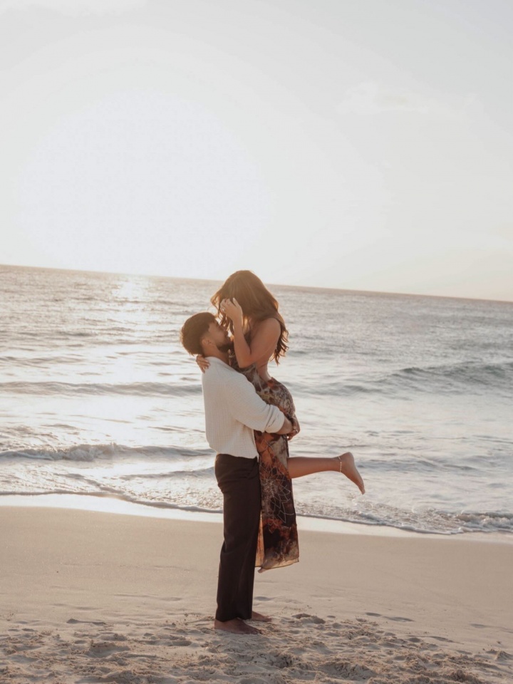 直播吧12月24日讯昨日,伍小海和女友发布社媒晒出组图,两人在海边幸福相拥,镜头记录下了伍小海求婚的浪漫一幕。