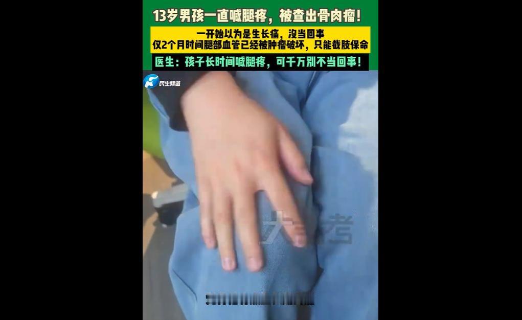 13岁男孩轩轩膝盖疼,爷爷误判为生长痛,就医仅开止疼药。 后疼痛肿胀加剧,父母返乡带其就诊时,确诊骨肉瘤因延误治疗被迫截肢。 13岁,本该蹦蹦跳跳的年纪,却因为一连串的疏忽,永远失去了一条腿! 这场悲剧根本不是“意外”,是家属的愚昧、基层医生的失职、健康科普的缺失,硬生生把孩子推向了截肢的绝境,想想都让人窒息! 基层医生太敷衍,连基本诊疗底线都守不住。 孩子膝盖持续疼痛还肿胀,不做任何检查,仅凭“生长痛”的猜测就开止疼药,把止疼药当“万能药”,完全无视骨肉瘤的典型预警信号。 如果多做一项检查、多一句提醒,或许就能保住孩子的腿,可他们偏要敷衍了事,这份失职堪比“间接凶手”! 家属的认知盲区,更是压垮孩子的关键一根稻草! 爷爷凭老经验误判“生长痛”,忽视疼痛加剧、肿胀等异常信号,错失了最早的干预时机; 父母远在外地打工,虽有现实无奈,但孩子持续不适两个月,才请假返乡就医,这份滞后的关注,终究还是晚了一步。 很多家长都和他们一样,把青少年骨痛当成“生长痛”,觉得忍忍就好,却不知这可能是致命疾病的预警,这种愚昧的认知,往往会酿成无法挽回的遗憾!