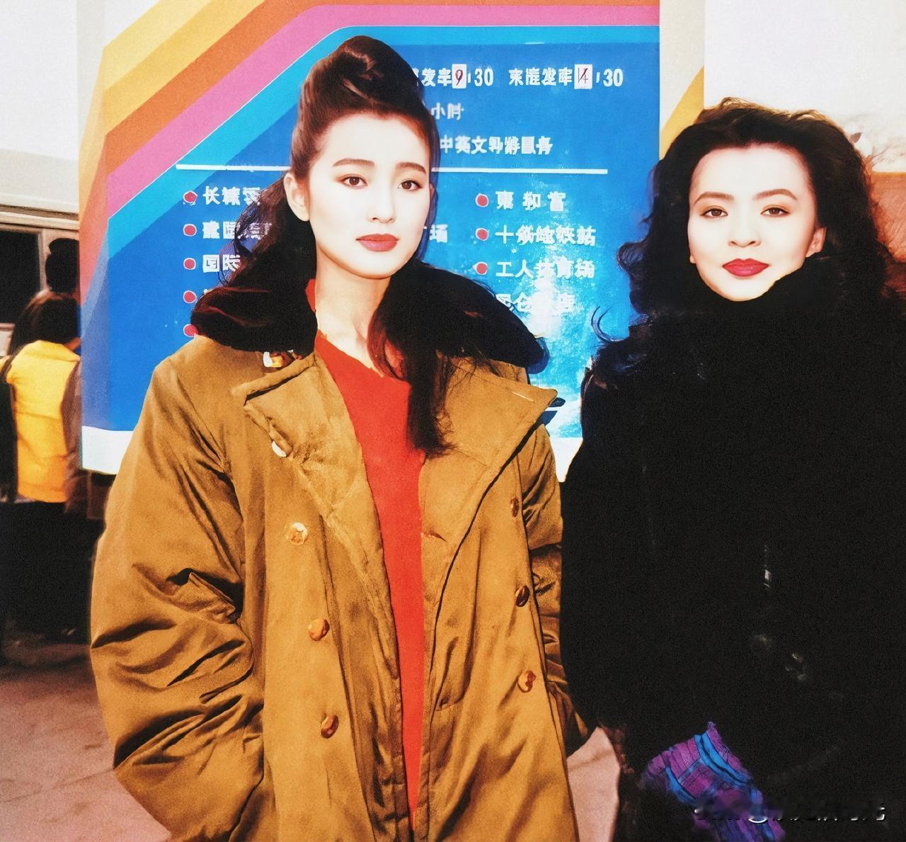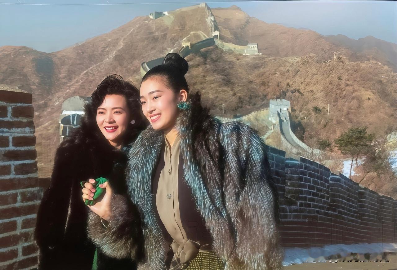 1989年底,陈玉莲到北京探班巩俐,两人之前并无合作,但她俩却有一个特别的缘分。 她们先后被选中饰演《大红灯笼高高挂》里的四姨太颂莲。 这次见面也是为了交流心得、探讨角色。 陈玉莲到北京的时候,巩俐正在拍《古今大战秦俑情》,两人就顺便爬了长城,拍下这组照片。 陈玉莲港风大波浪搭配黑色大衣,整个人光彩照人。巩俐一件简单的军大衣裹身上,虽然朴素但气质不俗。 两人都是出了名的美人,陈玉莲是标准的东方美人长相,巩俐则是气质超群,站在那里就有种无法忽视的气势。