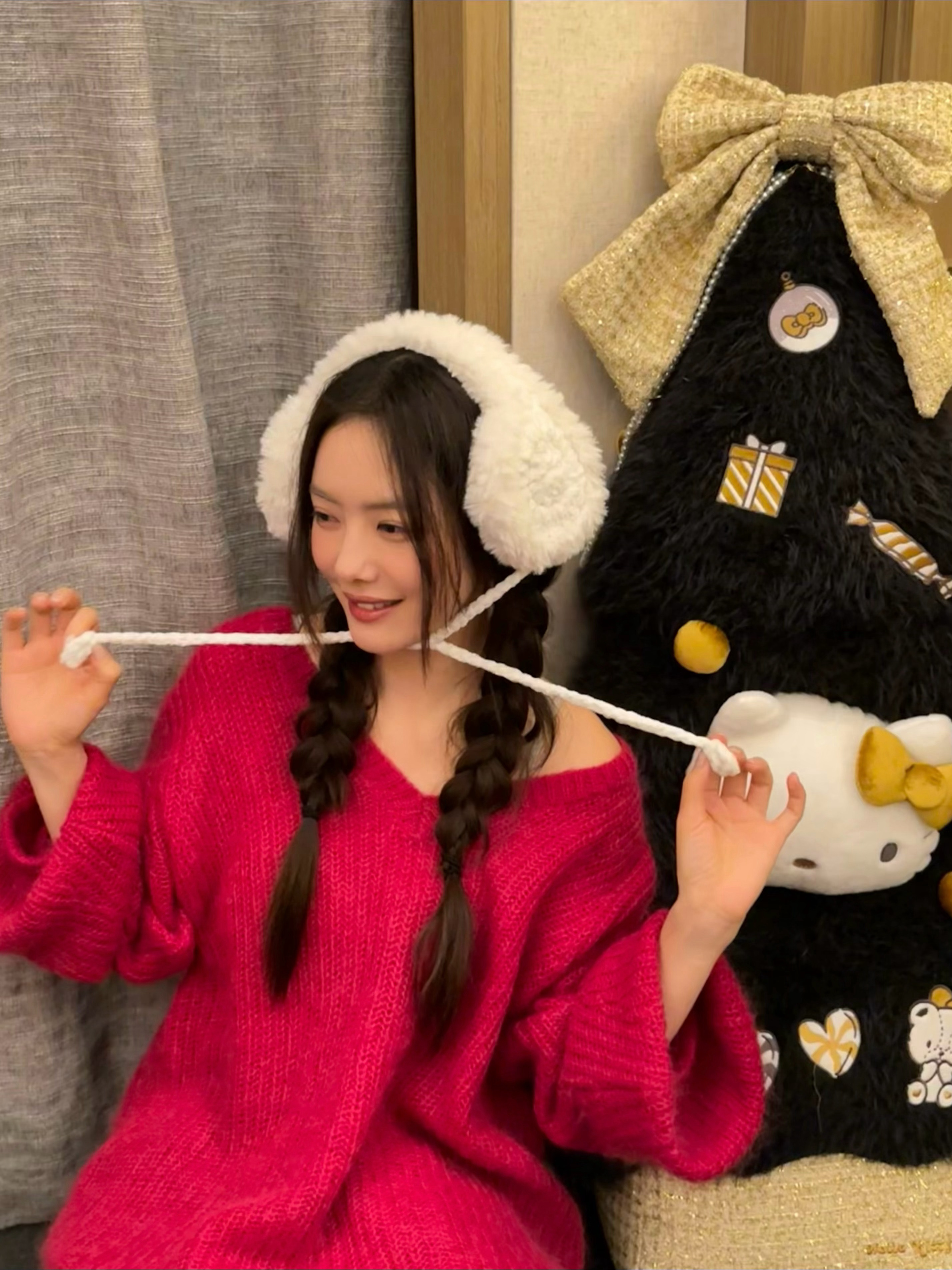 蔡文静周瑾 分享照片啦很有圣诞氛围的一组照片哇静仔的红色毛衣和白色耳罩好萌好萌!和姐姐一起期待2026的到来❤️🥰
