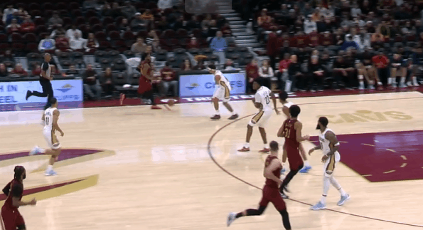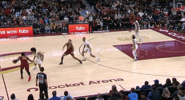 逐帧拆解:米切尔对阵鹈鹕,进攻技术细节解析图1佯装启动右路突破,在防守人重心向自身右侧偏移的瞬间压低重心胯下启动左路突破,行进间大回环合球+欧洲步摆脱防守人后抹入篮下终结打进。慢动作细节呈现:图2。图3早期进攻抓鹈鹕防守立足未稳,发动和韦德的边路挡拆配合,行进间节奏变化后in&out+瞬间的重心变换加速启动左路突破,直接过掉弱延误的奎因直杀篮下,左手大力炸球后起跳上篮打进。慢动作细节呈现:图4。图5胯下拉回后佯装启动右路突破,瞬间的爆发力+炸球大回环走左路直接过掉菲尔斯,随后合球起步抛投躲避奎因的协防。慢动作细节呈现:图6。图7抓早攻发动“Pistol-Dribble”战术配合,小跳步后借助加兰的掩护启动突破,对抗接触后立即合球起步摆脱墨菲后上篮得手。图8超高位置和韦德的挡拆发起,胯下佯装走掩护墙一侧,在韦德和皮维接触的瞬间衔接体前变向“拒绝掩护”走左路突破。抢出突破身位后面对前来换防补救的霍金斯,胯下侧身拉回后,立即衔接前转身加速突破,炸球后大回环合球躲过皮维的刷卡,起步抛投得手。NBA