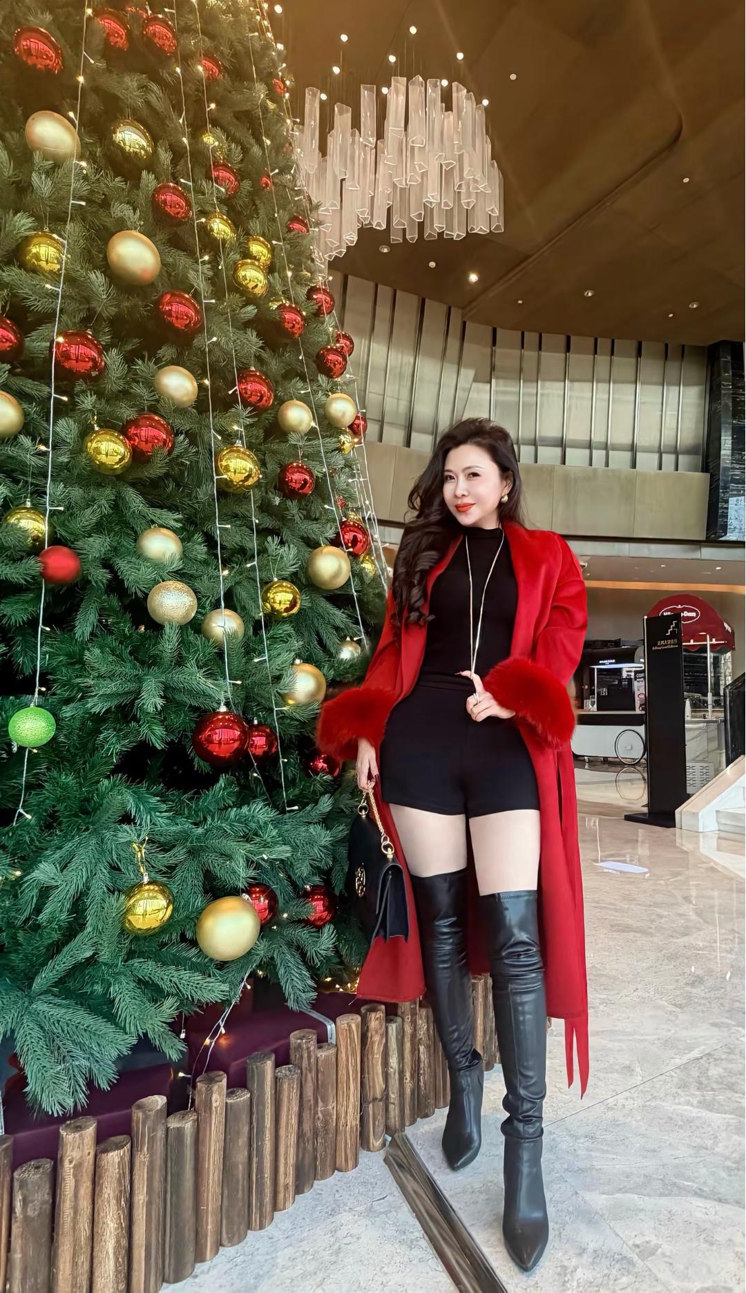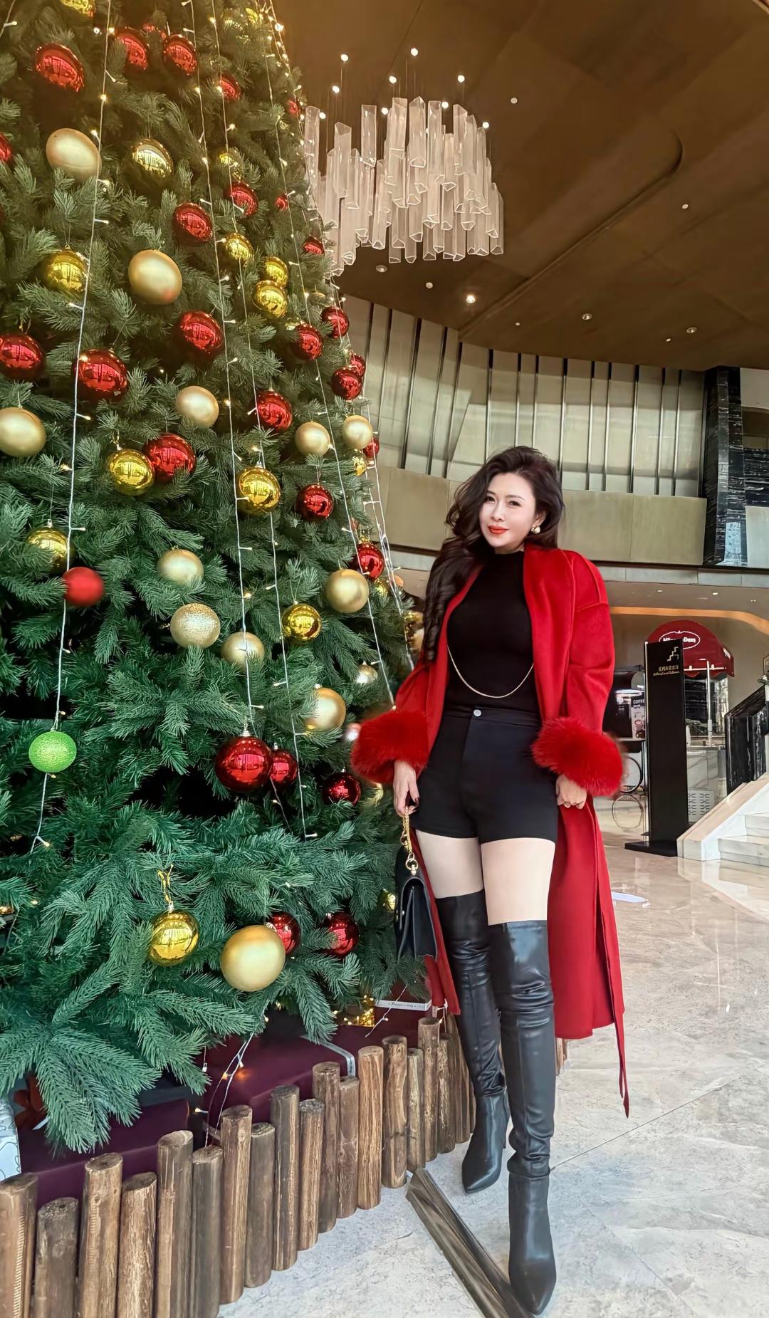 优雅红裙,珍珠项链,时尚而雅致,魅力无限。