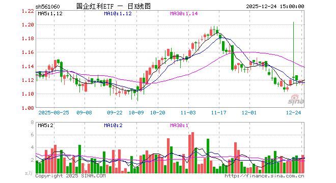 12月24日,国企红利ETF(561060)涨0.09%,成交额307.63万元。当日份额增加50.00万份,最新份额为5206.50万份,近20个交易日份额增加300.00万份。最新资产净值计算值为5829.20万元。