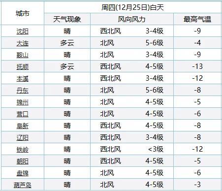 24日20时到25日8时,大连地区有零星小雪或阵雪,其他地区多云有时晴;最低气温西丰零下28℃到零下25℃,抚顺地区及铁岭市区、开原、昌图零下24℃到零下19℃,大连、丹东、锦州、营口、盘锦、葫芦岛地区零下12℃到零下7℃,其他地区零下18℃到零下13℃。25日8时到26日8时,全省晴有时多云。