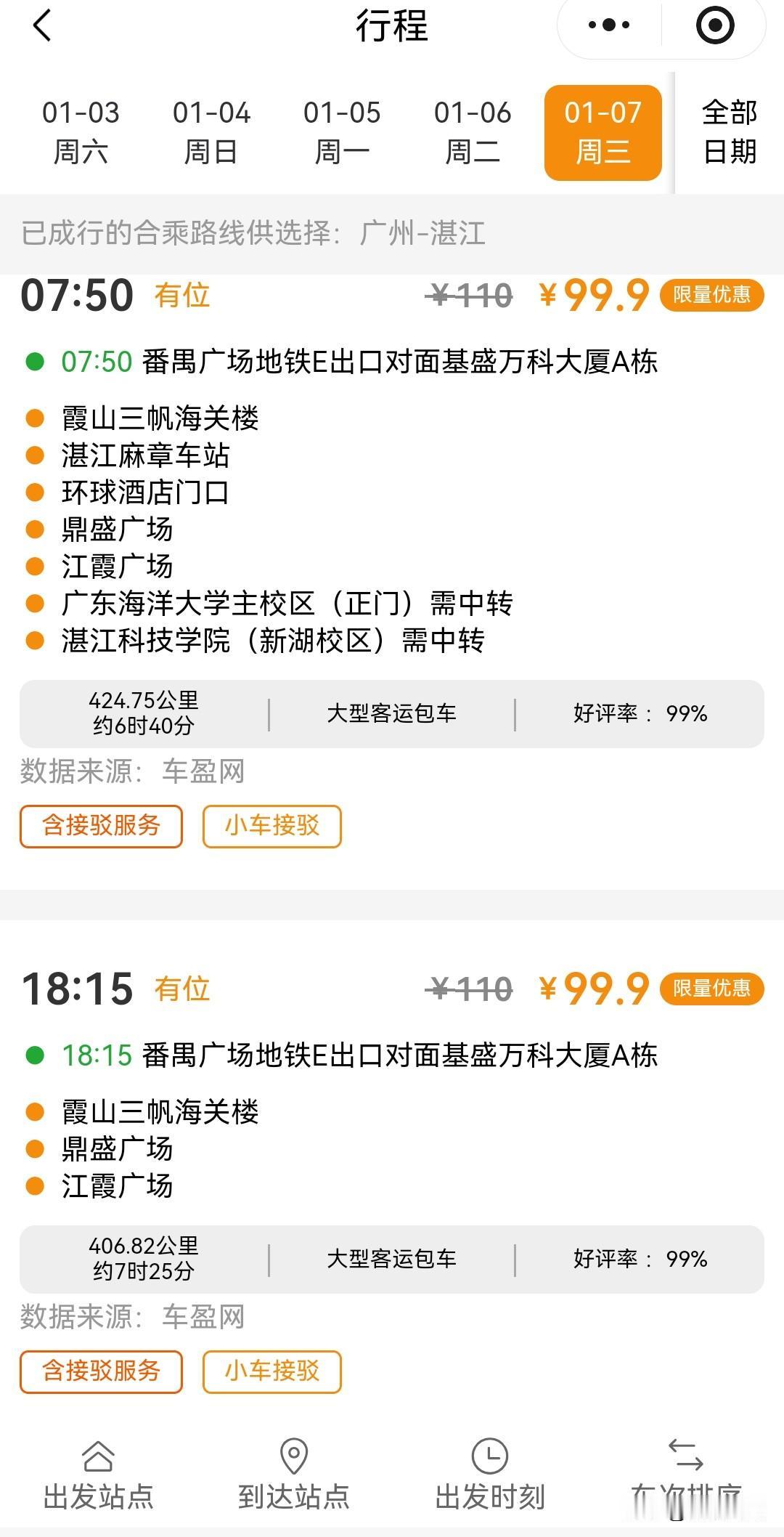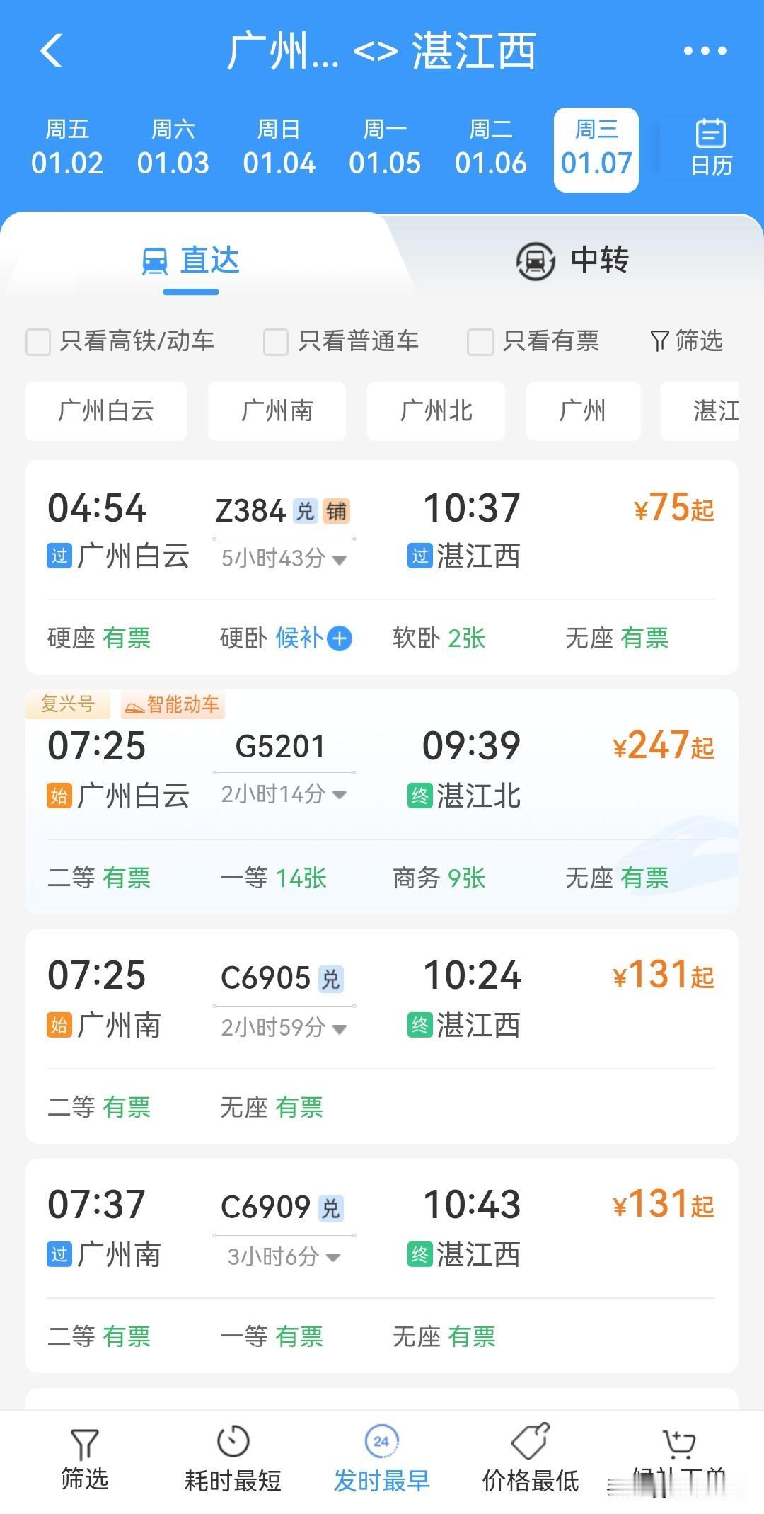 【粤西湛江地区的人,或许得犯“选择困难症”了!】从广州到湛江,坐大巴车票价99.9元,行程得花6小时;而城际动车如今票价降到了131元,行程只需3小时。 两者相比较,动车组行驶安全,乘坐舒适,行程时间也不长,而且现在价格也在可接受范围之内。 要是您,还有必要选大巴车吗?