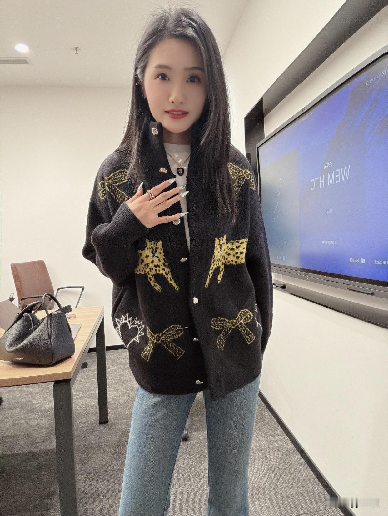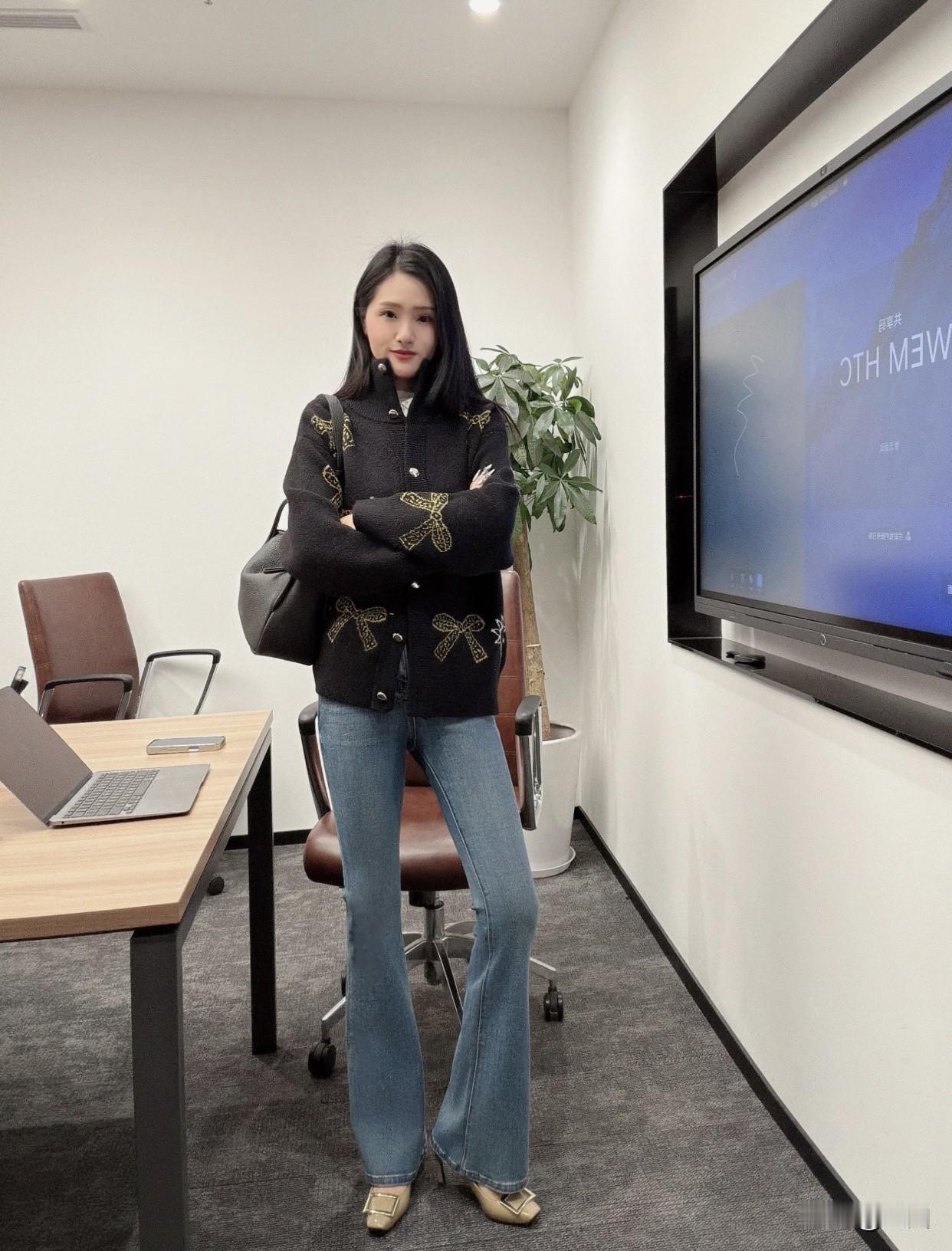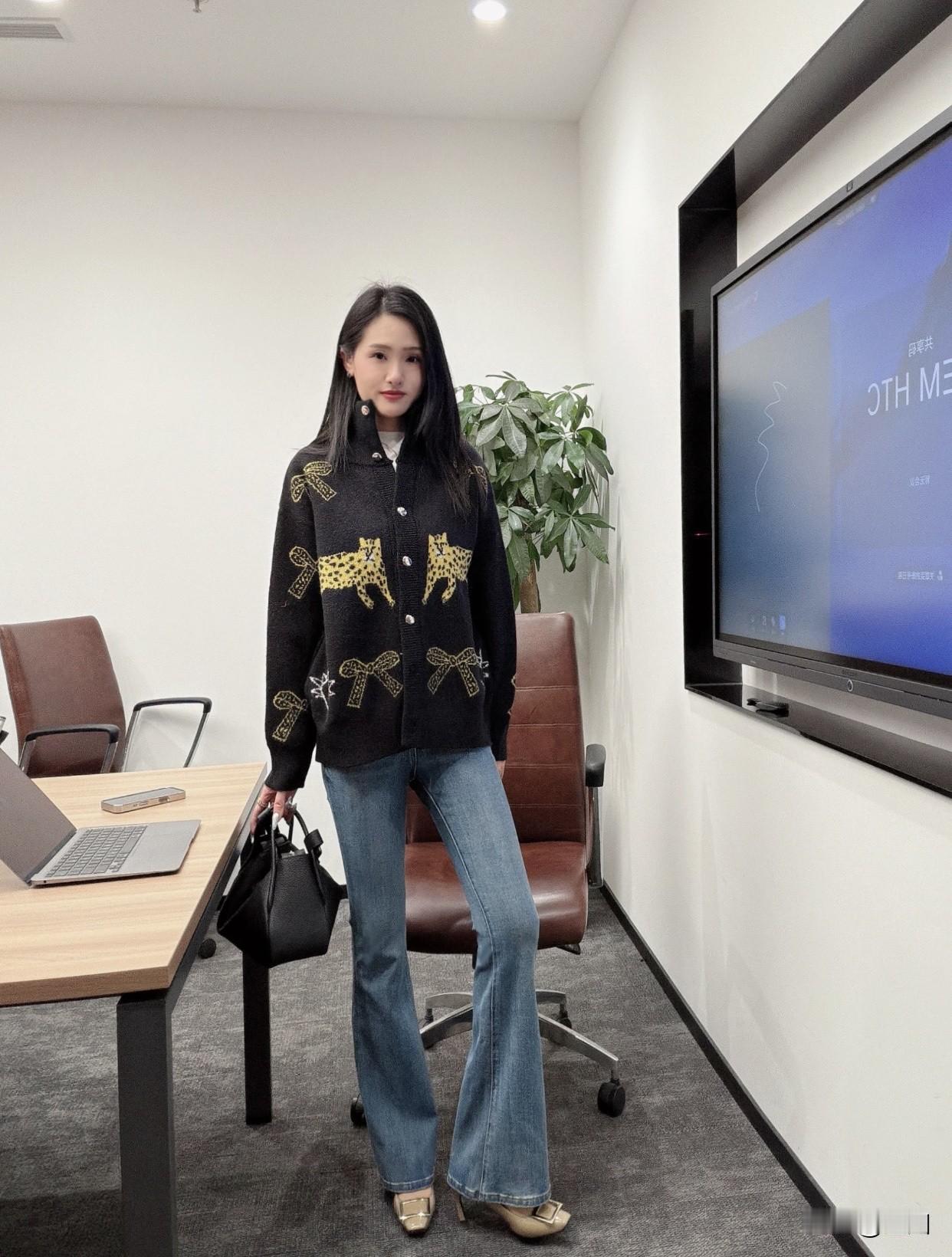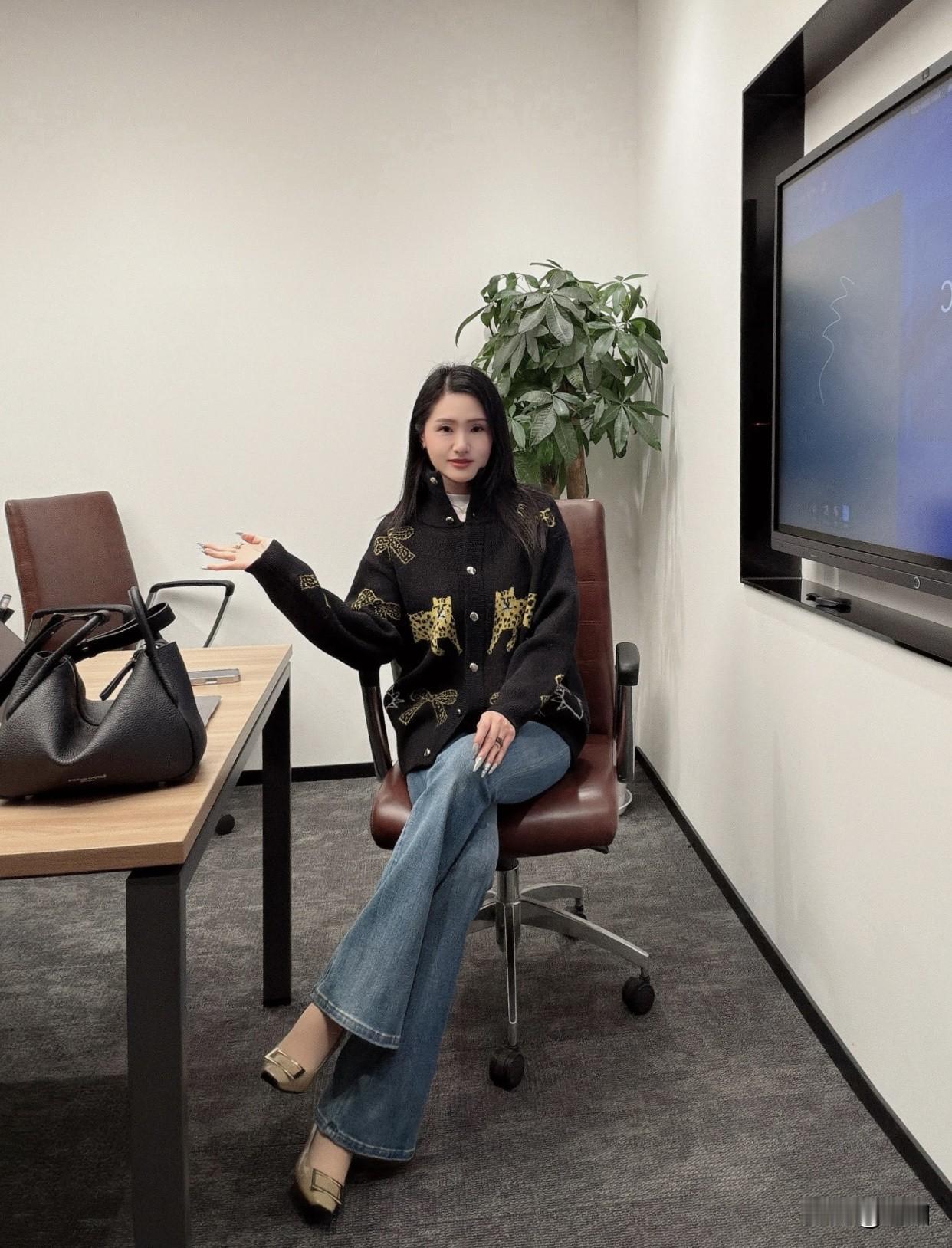 孙允珠穿黑色毛衣和短裙,再配上高跟鞋,那造型简直绝了。就说她穿黑色针织衫搭灰色西