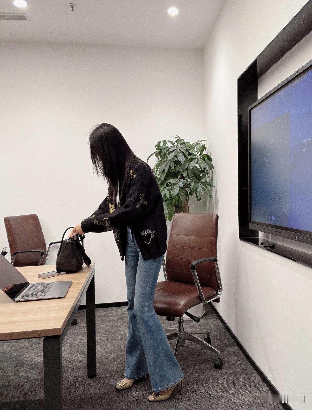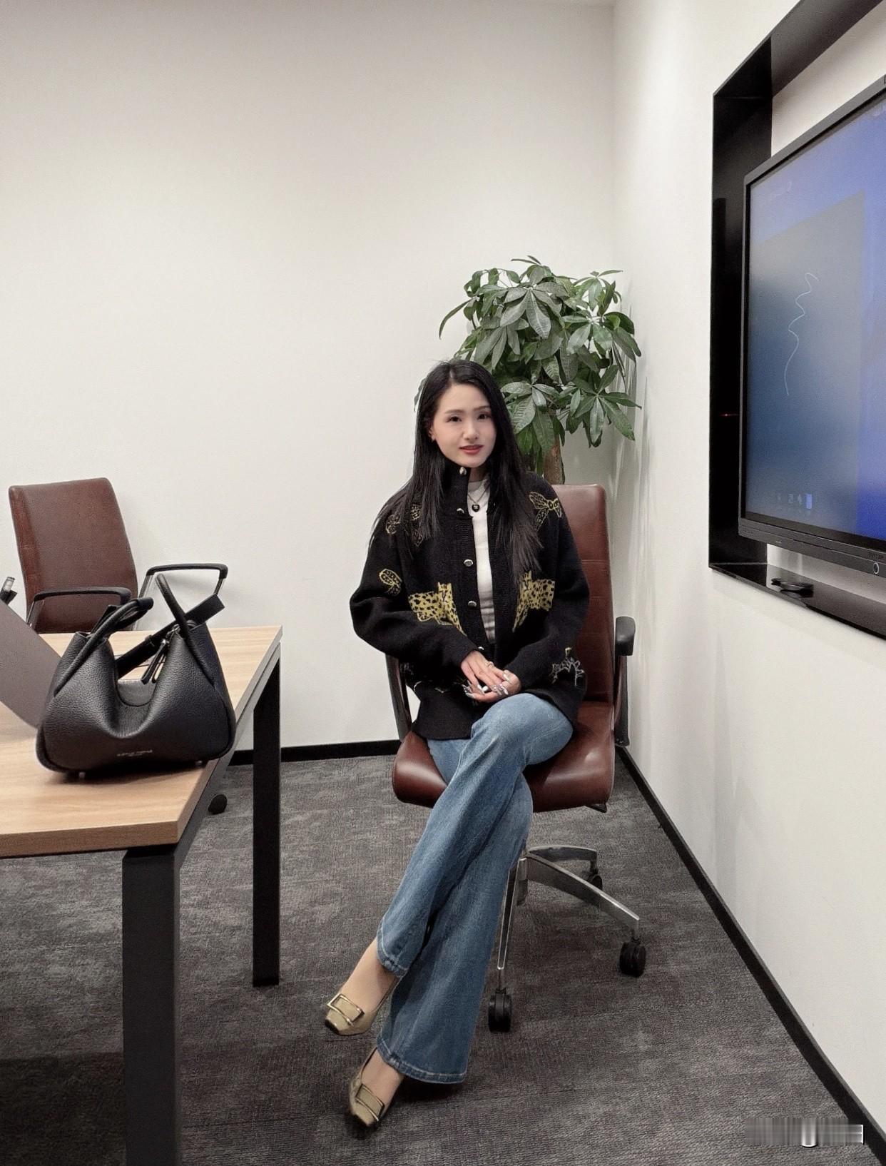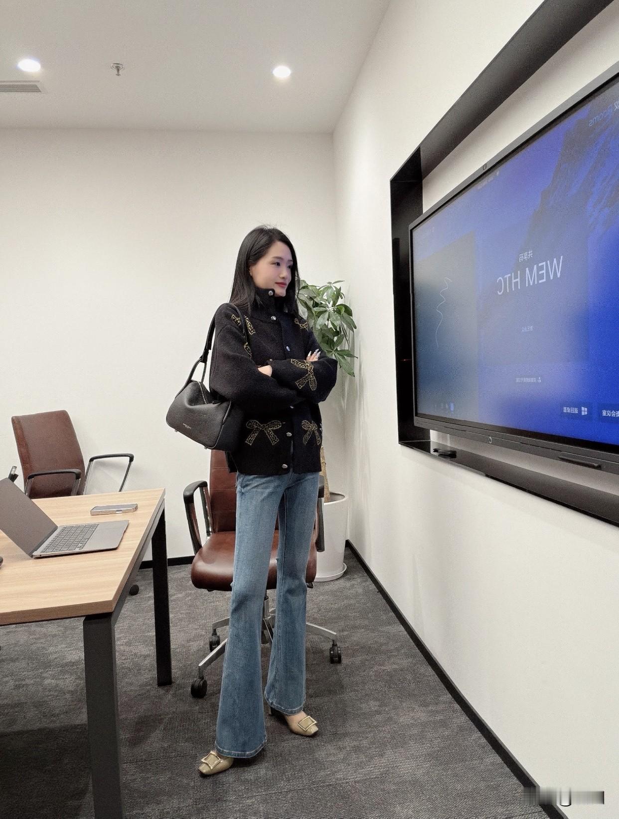 黑色外套配牛仔裤加高跟鞋,再拎上Gucci包,这搭配绝了,时尚感直接拉满!黑色