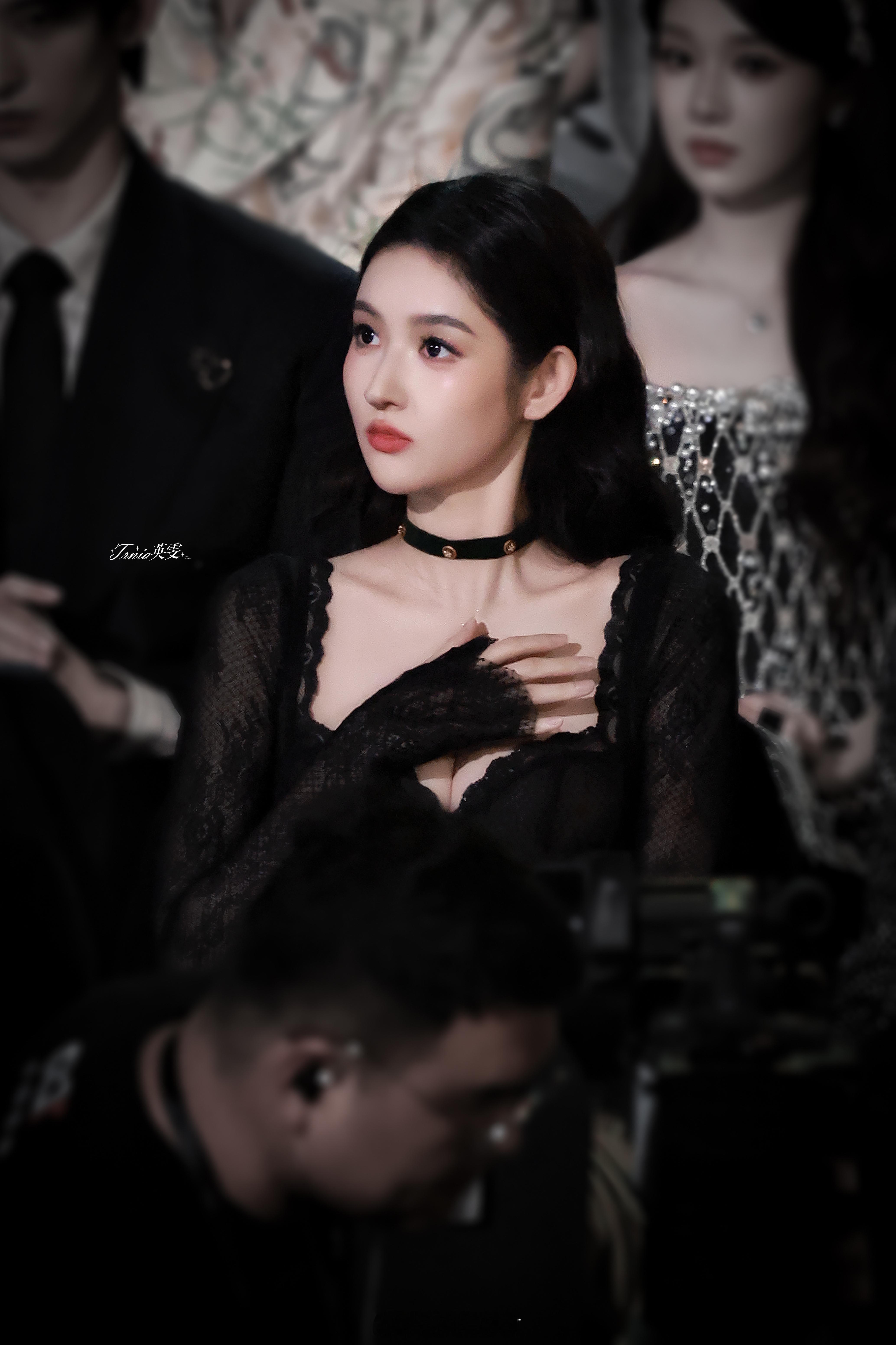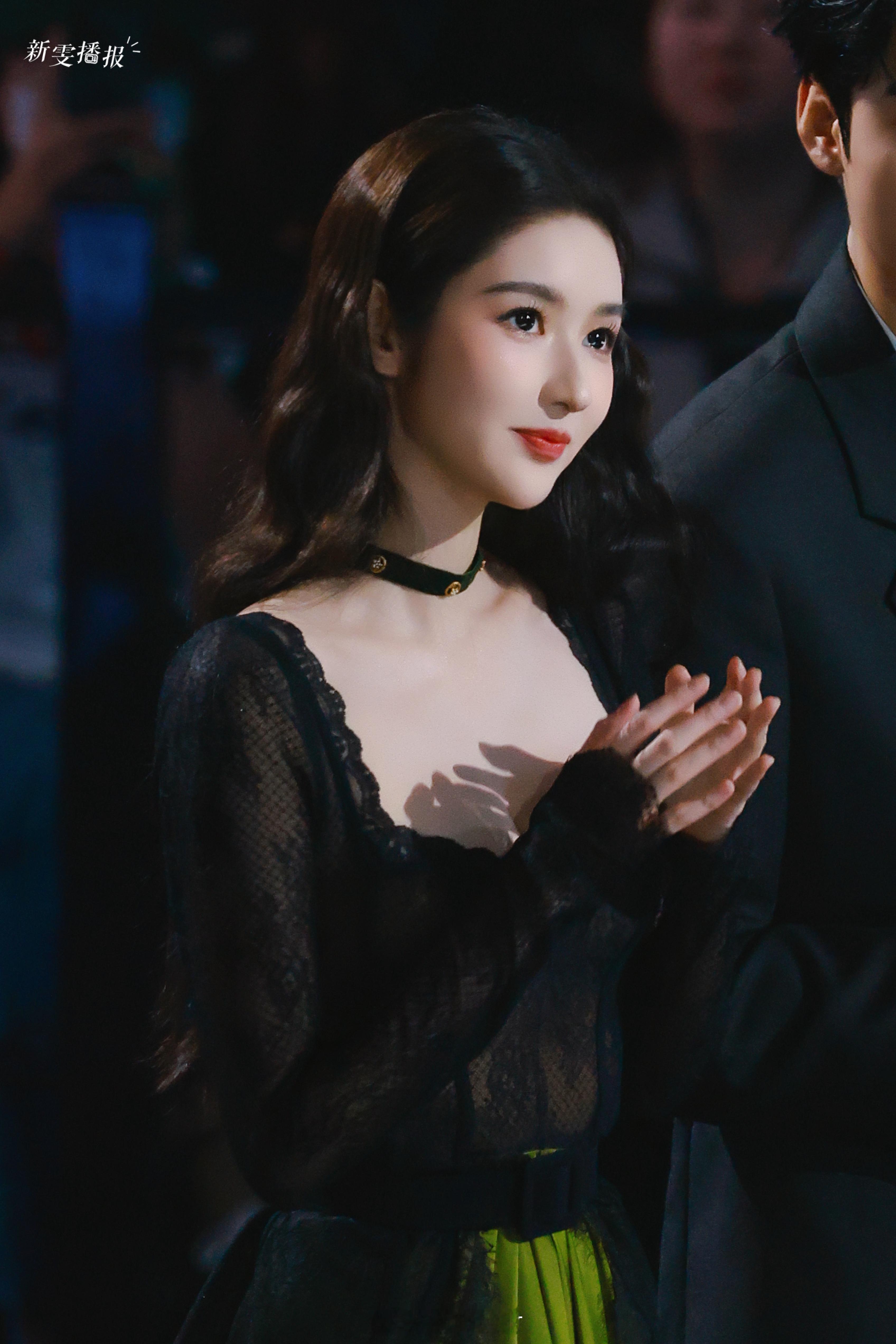 黑色抹胸短裙是氛围感利器,王玉雯一袭裙装亮相,简约剪裁更显身姿窈窕,回眸时的笑意