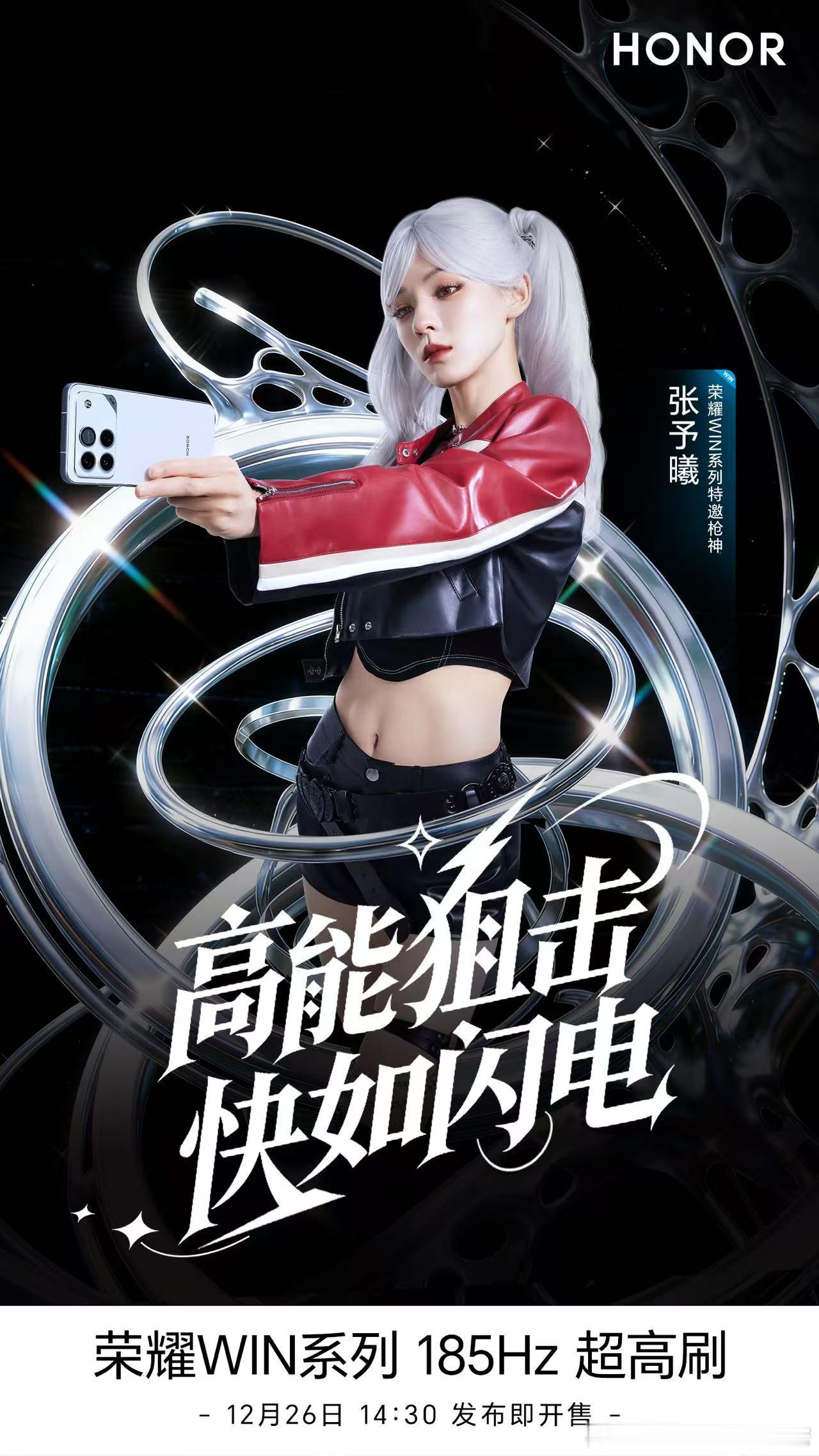 枪已上膛,胜负只在毫秒之间!手持荣耀WIN系列,185Hz 超高刷就是我的先手必胜!你,准备好接招了吗?荣耀WIN 系列新品发布会12月26日14:30 发布即开售张予曦