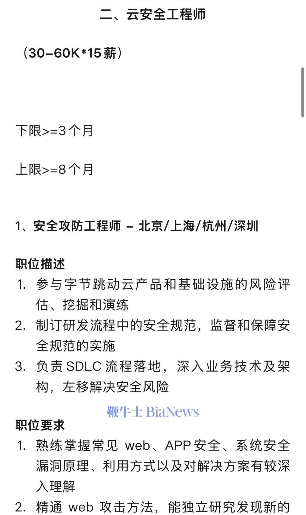 以及“云安全工程师”等岗位,薪资可达30-60k*15薪。