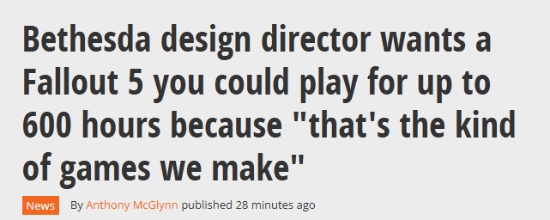 如果说贝塞斯达游戏有什么标志性特点,那超长游玩时间绝对算一个。不管《辐射5》最终会以什么形式呈现,它在体量和可重复游玩性上,都必须面对相当高的期待——毕竟《辐射3》《新维加斯》和《辐射4》本身就已经大到惊人。