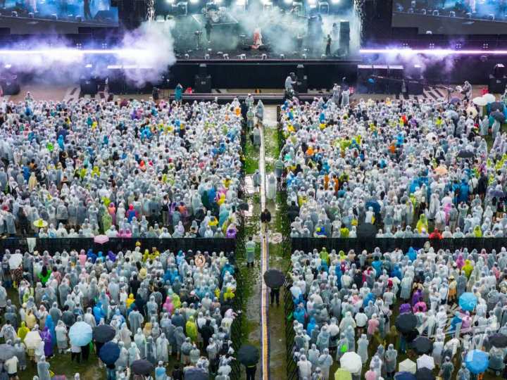 群众在杭钢公园冒雨看音乐节