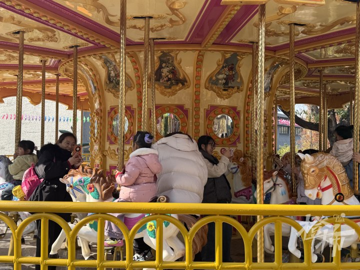 游乐园有着大大小小十多个游玩项目,每个项目前都排着长队。在“旋转木马”前,队伍中排着的多是着装粉粉嫩嫩的小女孩,在炫酷的“风暴机甲”前,一对双胞胎小男孩玩过一次还想再来一次,在“海盗船”上,一声声呐喊尖叫此起彼伏……家长们陪孩子坐在游乐设施上,脸上无一例外都洋溢着笑容。