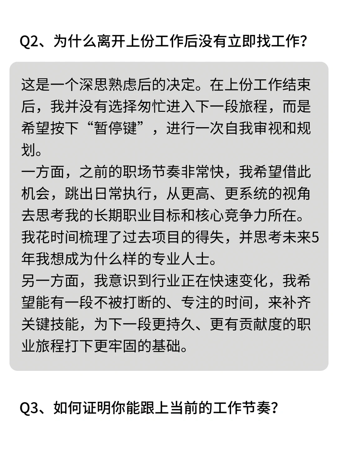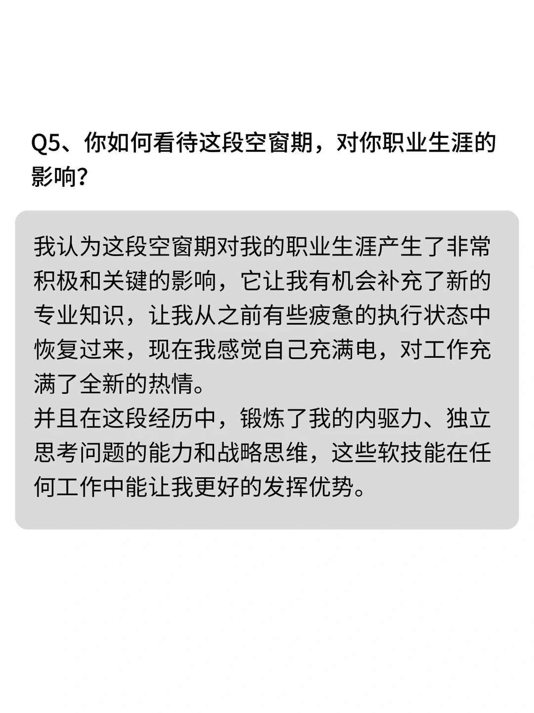 Q5、你如何看待这段空窗期对你职业生涯的影响?