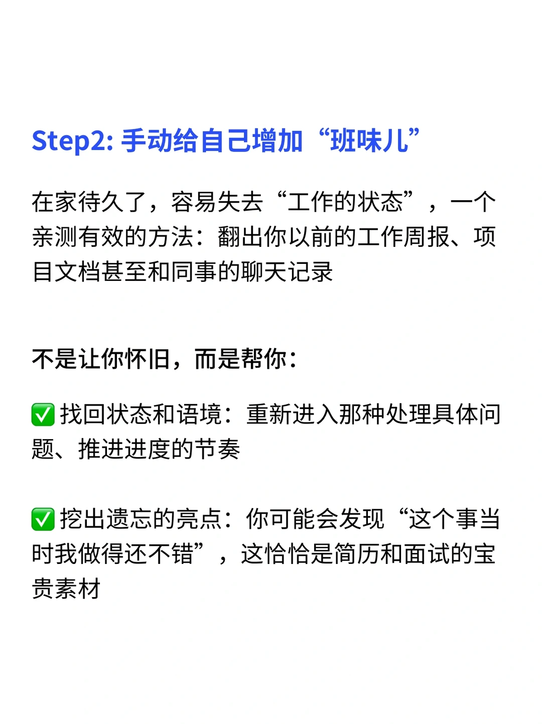 ✅ 找回状态和语境:重新进入那种处理具体问题、推进进度的节奏