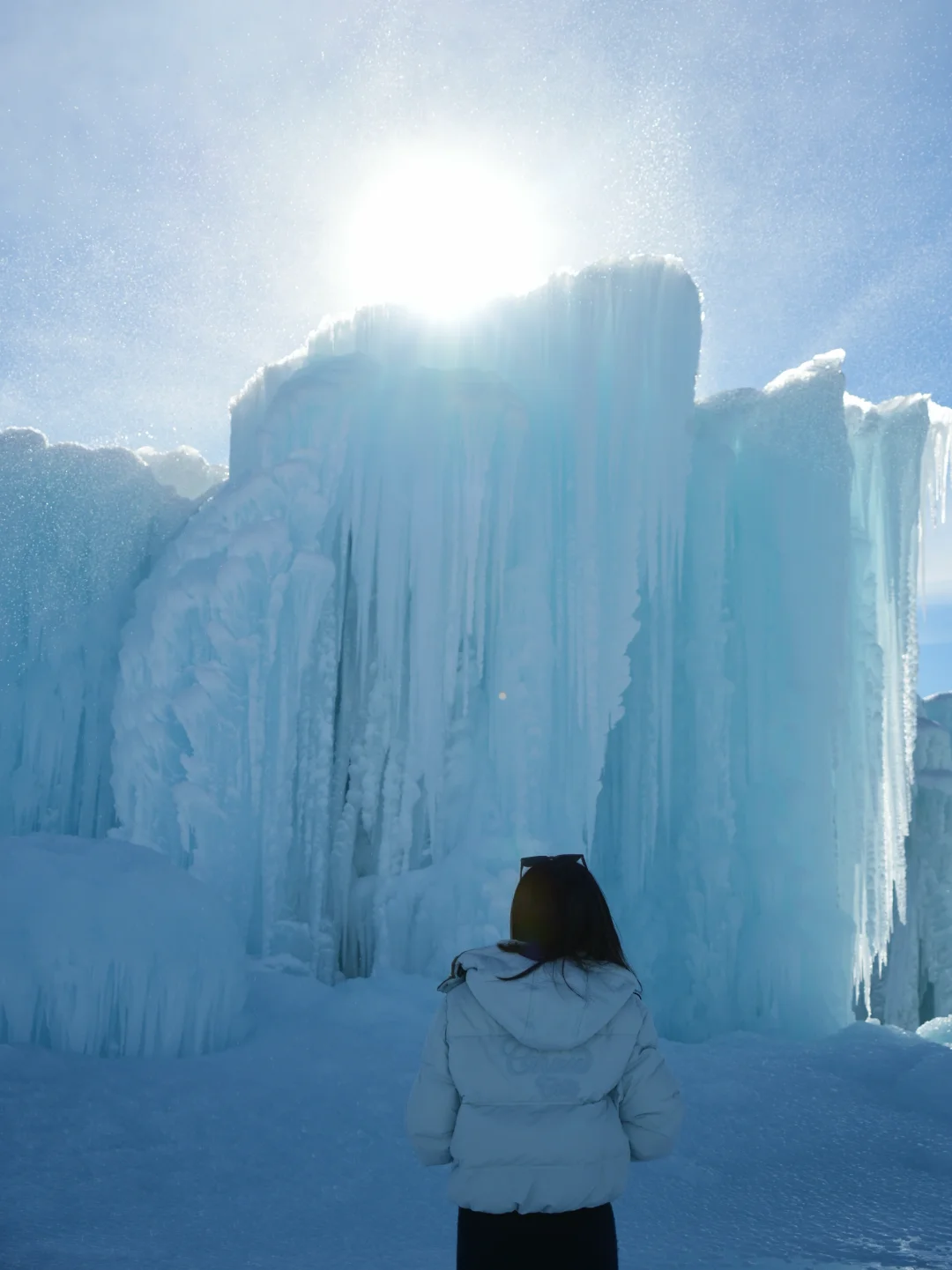 睡到9点左右吃完早餐,出门去松树头守候日出,随后前往天鹅乐水,虽然是人工的,但是冰瀑还是很壮观的(强烈建议带无人机,穿越冰瀑绝美!)