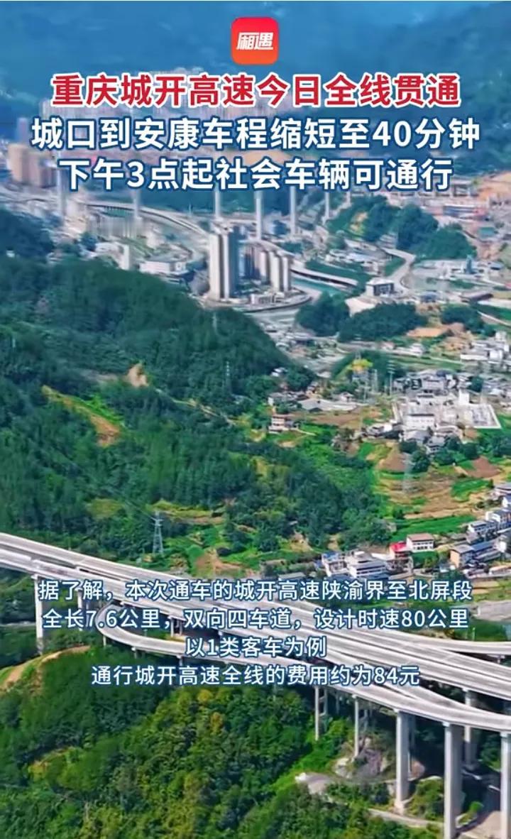 G69银百高速重庆城口至安康岚皋段已于今天(12月25日15时)正式通车,小客车0.7元每公里,13.5公里的大巴山隧道叠加收费10元,收费期限20年,城岚高速全线通车后西安和安康等地开车来往城口和开州还有万州和石柱等地将更加便捷,比走G65包茂高速绕行达州和万源至少节省1小时,城岚高速全长约65公里,双向四车道,设计时速80公里每小时(以实际为准),主要途经北屏、滔河、四季镇等地,城岚高速的建成通车意味着全长两千多公里的银百高速全线建成通车,陕渝各新增一条省际大通道。