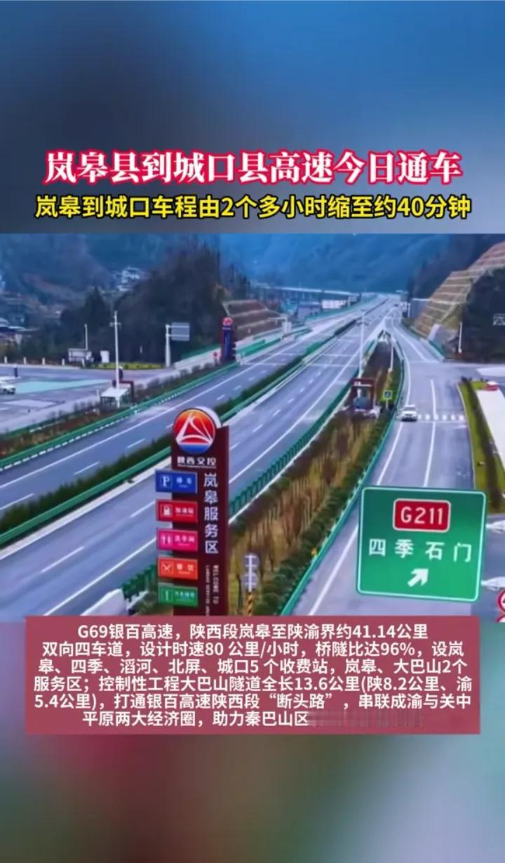 G69银百高速重庆城口至安康岚皋段已于今天(12月25日15时)正式通车,小客车