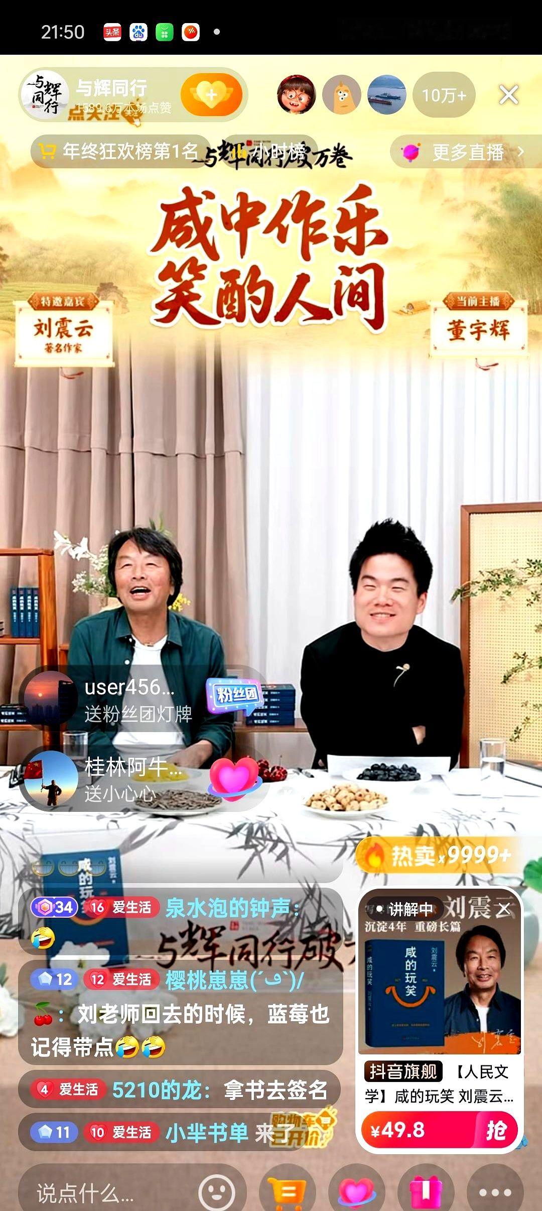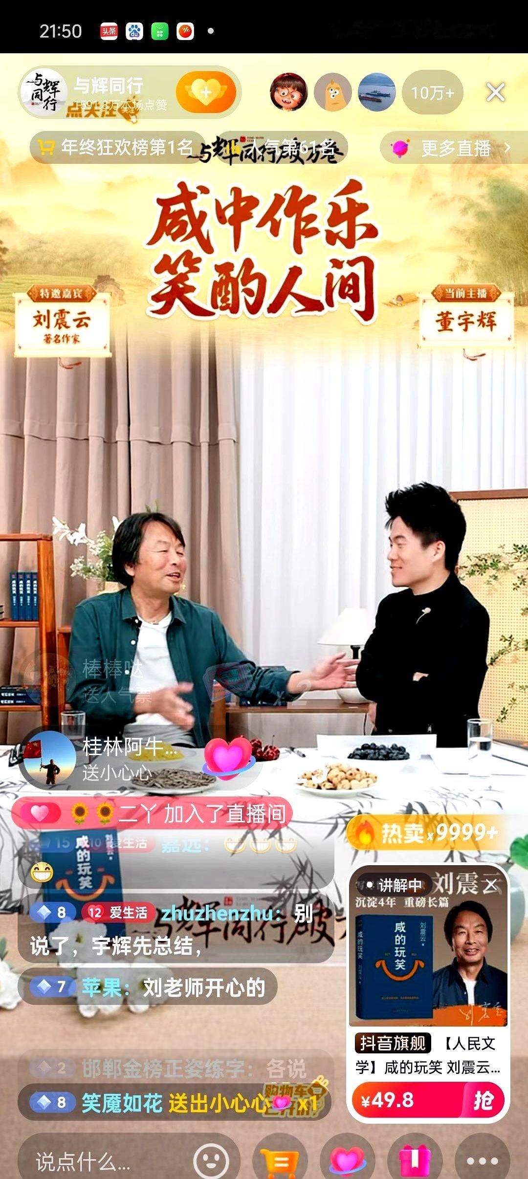 作家刘震云,把董宇辉的直播间当成了自己的素材库! 他做客“与辉同行”...