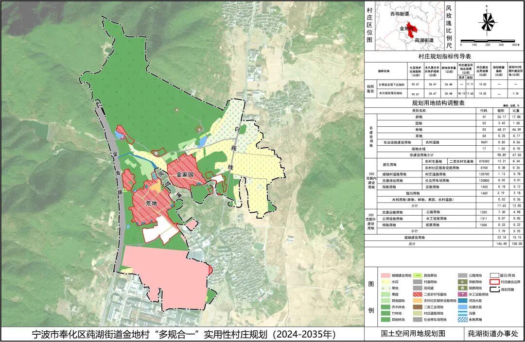 近日,《宁波市奉化区莼湖街道金地村“多规合一”实用性村庄规划(2024-2035)》正在进行批前公示。公示时间为2025年12月22日-2026年1月21日。