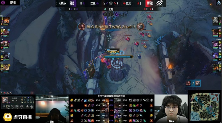 [12:28]Zika亚恒上路想要越塔单杀彬大哥反被打出亚恒被动,Zika复活后被彬大哥大纳尔排在塔下反单杀。