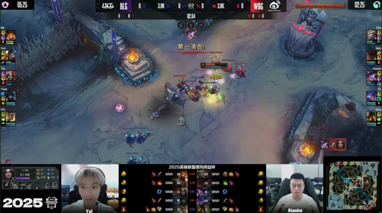 [2:26]中路Xiaohu辛德拉E中Yxl后轻松将其单杀拿到一血。