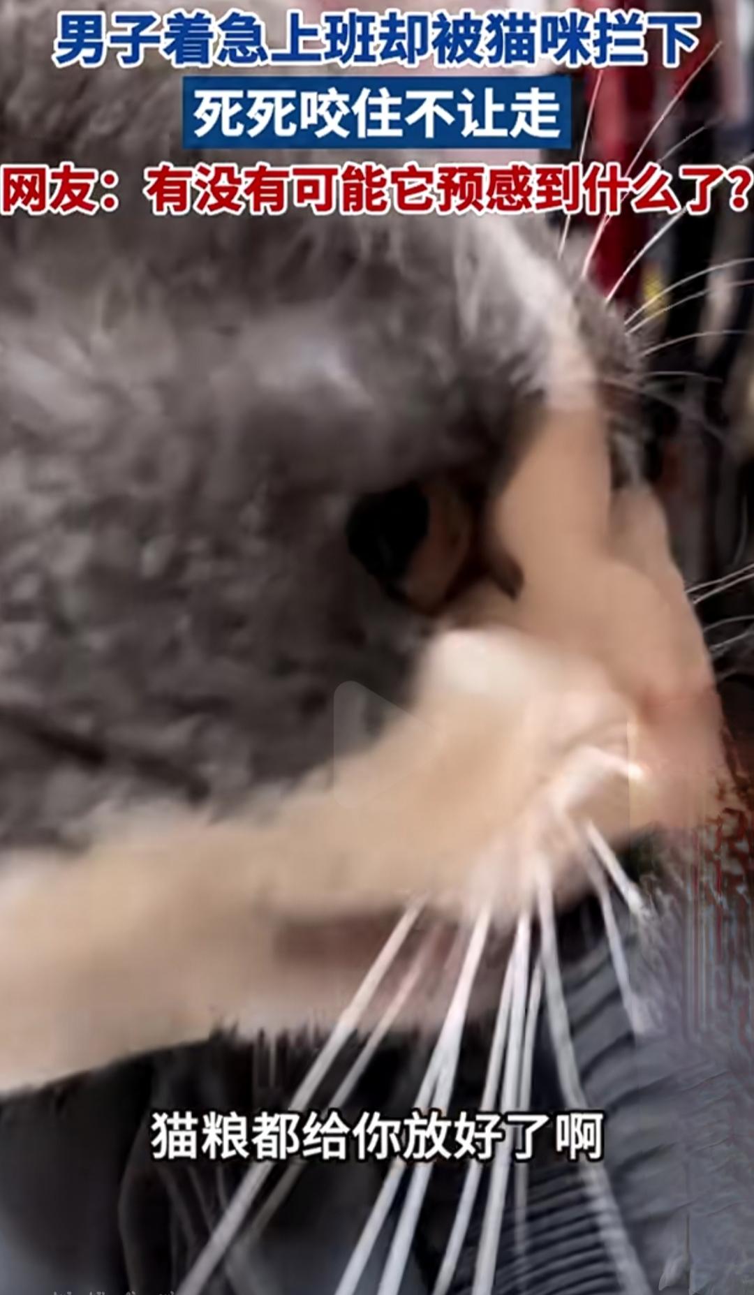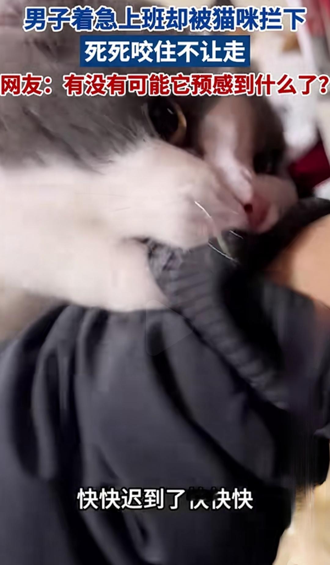 男子着急上班却被猫咪拦下,死死咬住不让走——这剧情一出,瞬间让人忍俊不禁。你以为这是个普通的宠物“霸占”主人的日常?错!这背后,或许隐藏着比你想象中更深的“猫界预言”。 事情的起因很简单:男子一大早匆匆忙忙准备出门,心里还盘算着今天的会议该怎么应付。结果,他的“忠实伴侣”——那只平日里温顺的猫咪,突然变身“守门员”。只见猫咪一跃而起,死死拦在门口,用那双“会说话”的大眼睛盯着他,嘴里还不客气地咬住了他的裤脚,仿佛在说:“你今天别想走!” 这场景让不少网友笑出声,但也有人开始深思:难道猫咪真的有“第六感”吗?有人调侃说:“这猫是不是预感到主人要出什么大事,想提前阻止他?难不成它知道今天会发生什么?”更有网友打趣:“这只猫是不是在说:‘你今天别想走,除非你答应我带我去吃好吃的!’” 其实,猫咪的这种行为看似任性,背后却折射出它们对主人的深厚感情。它们用“拦截”来表达:你不能离开,因为我还没陪够你,或者……它们真的察觉到一些我们未曾察觉的“预兆”。毕竟,动物的感知比我们复杂得多,难不成它们真能“看穿”未来?这是不是一种令人感到温暖又神秘的“猫界预言”呢? 更妙的是,这件事在网络上引发了热烈讨论。有人笑着说:“这猫比我还懂事,知道我快迟到了还要拦着我。”有人则感叹:“看来,宠物不仅仅是陪伴,更像是家里的‘守护天使’。”也有人开始幻想:要是我家那只猫也能预知未来,是不是每天都能提前告诉我买彩票中奖号码? 这件小事,让我们再次感受到宠物与主人的那份默契和温情。它们用行动告诉我们:无论生活多忙碌,别忘了停下来陪陪身边的“毛孩子”。因为,也许,正是这些“预感”与“拦截”,让我们的生活多了一份温暖与惊喜。 所以,下次遇到家里的猫咪突然“拦路”时,不妨多想想:它是不是在用它那“神秘的第六感”告诉你些什么?毕竟,宠物的世界,总是比我们想象得更有趣、更深奥。