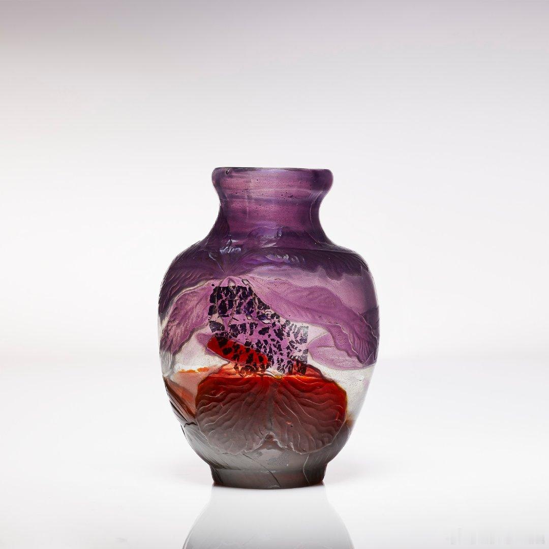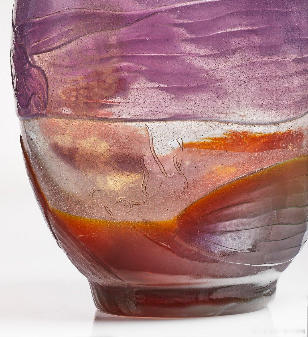西洋历史文化鱼缸 历史知识 法国新艺术运动工艺美术大师艾米里·加莱(Émile Gallé,1846年5月8日-1904年9月23日)1900年左右的《鸢尾花》玻璃瓶。尺寸为18 x 11.4 x 9.6 cm。