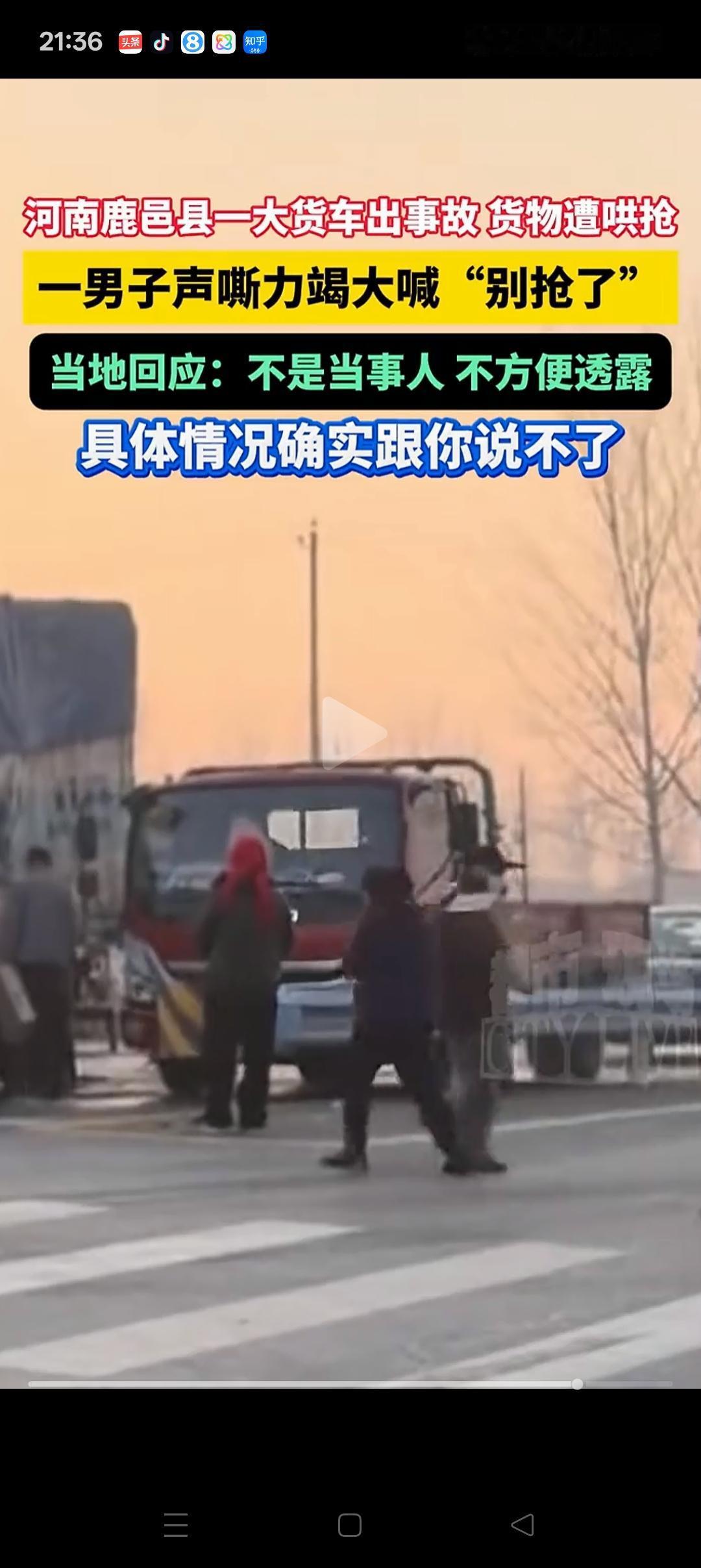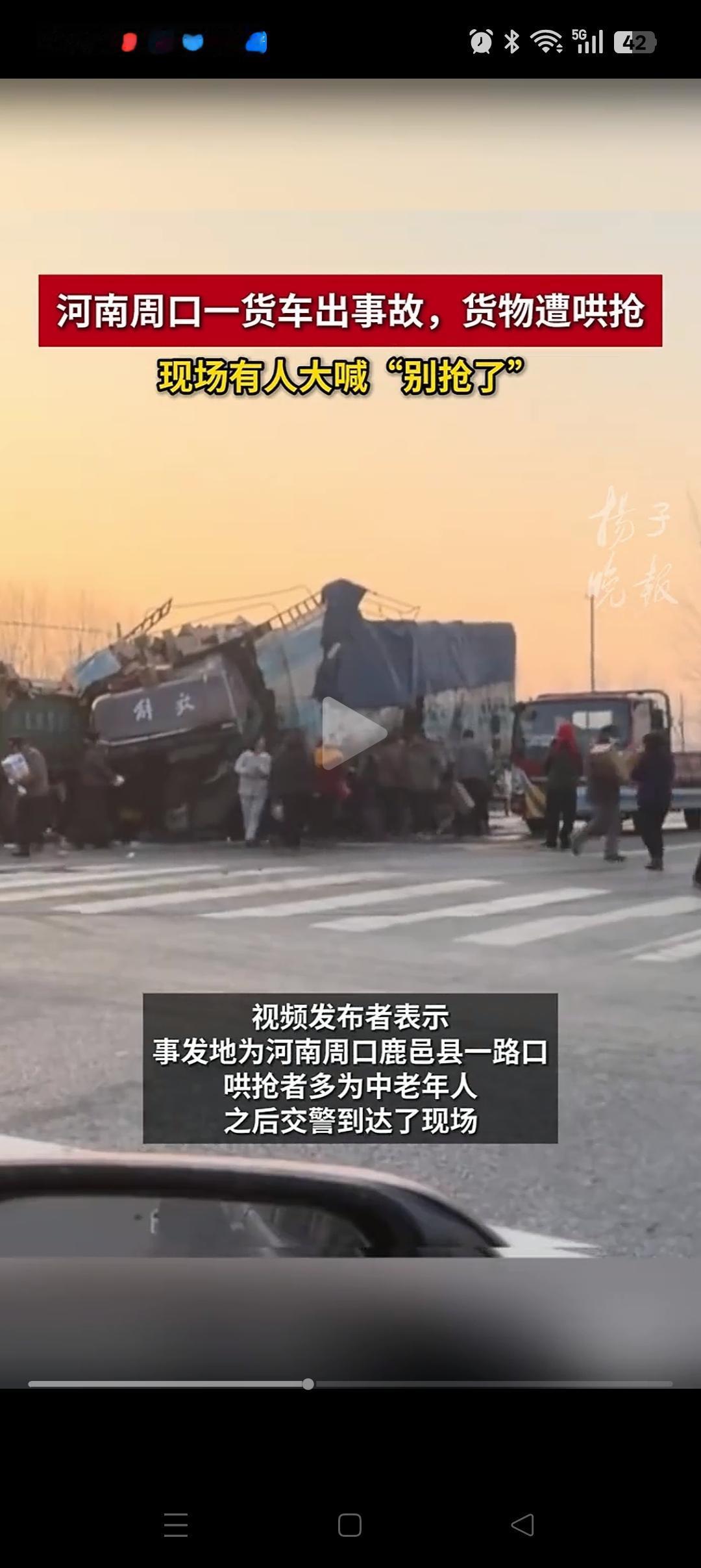 “别抢了”,河南,一货车发生侧翻,地上的货物也遭到了“哄抢”。只见一些中老年人搬着东西,不慌不忙的离开。虽然货车司机喊着“别抢了”,但还是于事无补。 我相信这里面也有一些好人,他们主动付款,帮忙买走了一些东西。至于有些人趁机顺走一些摔坏的东西,确实可恨。 毕竟货车司机拉货只是收运费的,这些货物受损他们需要赔钱,还是不小的一笔钱,可以说很难承受。 最后希望当地工作人员能够找到这些趁机顺走东西的老人,给予严厉的处罚,确实有点给当地丢人了!