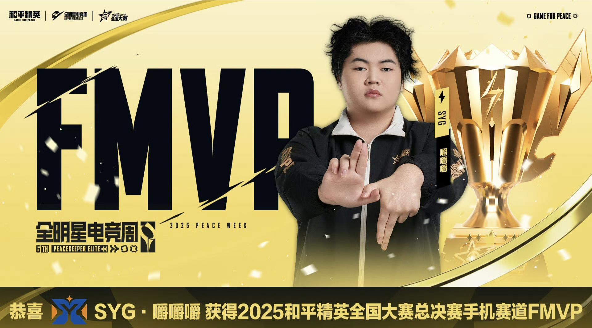恭喜SYG·嚼嚼嚼获得2025和平精英全国大赛总决赛(手机)FMVP!