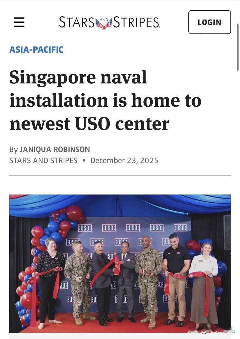 🔴🇺🇸🇸🇬“美国劳军联合组织(USO)”首次在新加坡设立新服务中心🔴星条旗报 2025年12月25日 美国劳军联合组织(United Service Organizations,USO)12月19日在新加坡北部森巴旺的“战略海军基地”(Sembawang Naval Installation)开设了一个新的海外服务中心,旨在为驻新加坡海军基地的美国军人及军人家属提供后勤保障和生活品质相关的服务,新加坡海军为这处美军服务中心进行了剪彩揭牌仪式。 1971年4月16日,新加坡、英国、澳大利亚、新西兰、马来西亚曾共同签署“五国联防协定”(Five Power Defence Arrangement,FPDA),核心是为马来西亚与新加坡的外部安全提供集体保障,设联合咨询委员会、防空委员会,以及国防部长会议(FDMM)、参谋长级会议等,统筹磋商与规划。五国共享“森巴旺等海军基地”的后勤保障。(如维修保障与物质补给) “美国劳军联合组织”(USO)印度洋 - 太平洋地区副总裁斯科特·马斯克里(Scott Maskery)在新加坡服务中心的剪裁仪式后致辞称,决定在此增加服务中心的起因是,2017年8月21日美国“约翰·麦凯恩”号驱逐舰(USS John S McCain)与悬挂利比里亚国旗的油轮“阿尔尼克MC”号(Alnic MC)发生碰撞事故,撞船导致10名海军士兵遇难、48人受伤。事故发生后,“美国劳军联合组织(USO)”通过“USO关怀包裹”(USO Care Packages)和“USO随行包”(USO2GO kits)向新加坡海军基地以及印度洋的迪戈加西亚(Diego Garcia)提供了应急支援,美国高层认为有必要在新加坡增设一处保障节点。 🔴USO关怀包(USO Care Packages)、USO随行包(USO2GO kits)均为美国劳军联合组织(USO)向美军人员免费提供的福利物资包,差异在于服务场景、内容定位与发放方式。保障物质可通过USO中心、合作渠道分发,个人与单位可按需申领。 🇺🇸USO关怀包(USO Care Packages)是面向部署、救灾、中转等场景的个人便携基础物资包,满足即时补给需要。里面装有零食包、洗漱包(卫生清洁用品),带MOLLE系统的耐用尼龙背包,可挂载单兵装具,加挂额外的战术口袋。(“MOLLE系统”MOLLE Modular Lightweight Load - Carrying Equipment类似我们部队用的单兵携行背囊,容量从30L到65L不等, 于1997年推出,旨在取代之前的ALICE系统和IIFS系统。直到2001年“9·11”事件后,才被广泛应用于阿富汗和伊拉克战场。) 🇺🇸USO随行包(USO2GO kits)在2008年推出,主要为没有实体“美国劳军联合组织”服务中心的偏远/作战/舰艇等单位提供生存支持,相当于“移动USO中心”,旨在提升集体士气。随行包物资可根据实际情况灵活搭配,还会向美军人员提供电子游戏设备、乐器、体育用品、休闲家具等,满足集体娱乐与生活需求。“USO随行包”已累计向全球800多个偏远地点送出2.4万套件。“USO随行包”仅限军方单位申请,由后勤伙伴统筹装配与全球站点。 “美国劳军联合组织”是在二战前夕由富兰克林·罗斯福总统创立,旨在整合多个军人服务协会。相关信息显示,USO在全球已有250个服务中心,可持续为海外部队提供支援。