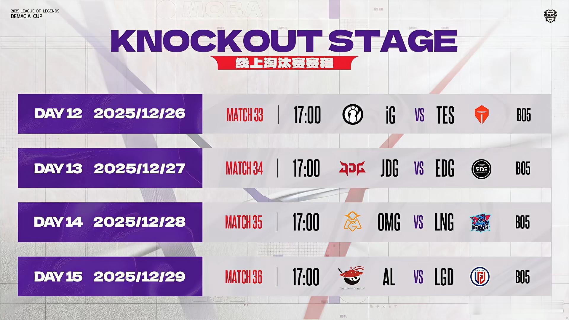 德玛西亚杯淘汰赛赛程如下,大家最期待哪一场?2025德玛西亚杯wbg战胜blg2025lpl