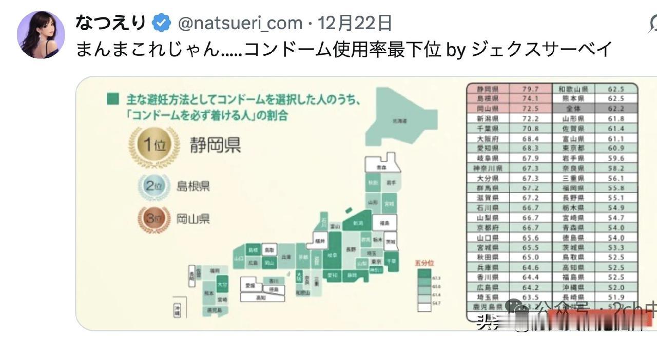 日本爱媛县的梅毒确诊病例创新高,男性54.9%去过风俗店! 据日本爱媛县报道,截至2025年12月17日,该县今年共确诊155例梅毒病例,男性113例,女性42例,已经打破2023年创下的142例的纪录。按年龄划分,40多岁的男性为27例,其次是20多岁和30多岁的男性各24例、50多岁的男性21例以及60多岁的男性10例。女性病例数最多的是20多岁的女性17例。 约80%的男性和90%的女性是通过异性之间的X接触感染的。在男性中,54.9%的人在过去6个月内曾光顾过风俗产业。 有日本网友拿出统计结果,说爱媛县的安全套使用率是日本最低的!
