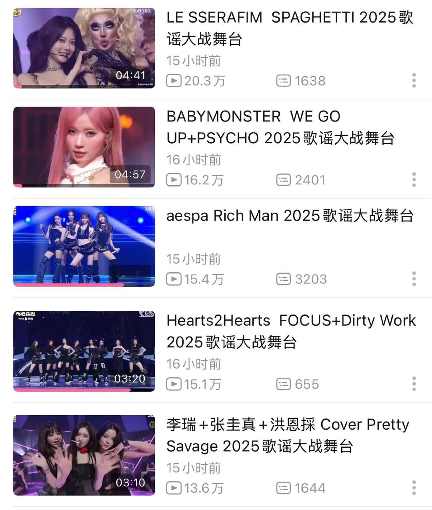 sbs舞台播放量前五📊油管:babymonster Hearts2Hearts 崔然竣&郑允彩 LESSERAFIM Cortisb站:LESSERAFIM babymonster aespa Hearts2Hearts 李瑞&张圭真&洪恩採