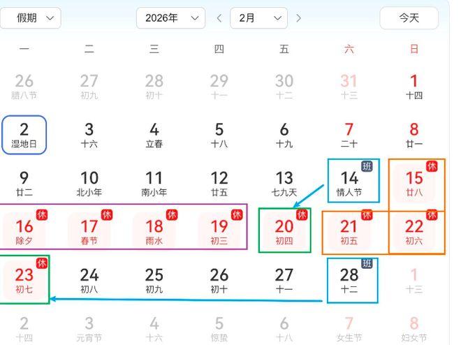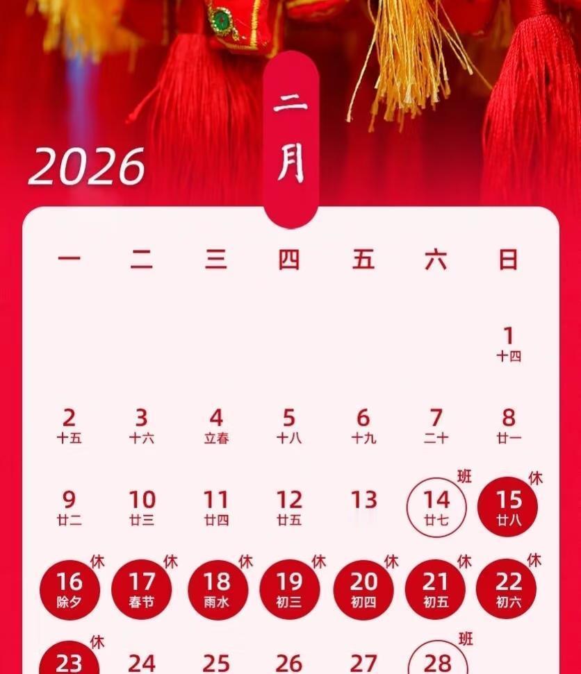 2026年春节放假9天并减少调休,这一政策调整引发了广泛关注,究竟有何深意? 近年来,春节假期的安排备受社会各界关注。为更好地满足人民日益增长的美好生活需求,国家发展改革委宣布2026年春节期间将放假9天,并减少调休,这一政策调整旨在让民众能够更加从容地享受假期。据国家发展改革委发布的报告,此举不仅能够增加人们的实际休息时间,还有效缓解了因频繁调休带来的工作压力。春节期间,人们可以更早进入假期状态,提前筹备年货和家庭聚会,同时也能更好地规划旅行和休闲活动,提高整个春节假期的幸福感和满足感。此外,科学合理的调休安排也有助于维护正常的社会秩序,使得公众能够在享受假期的同时,不至于过度影响日常生活节奏。这一政策调整体现了政府以人为本,注重提升民众生活质量的决心,也为即将到来的新一年注入了更多温暖与希望。 2026放假表 年节假日安排表 法定节假日安排
