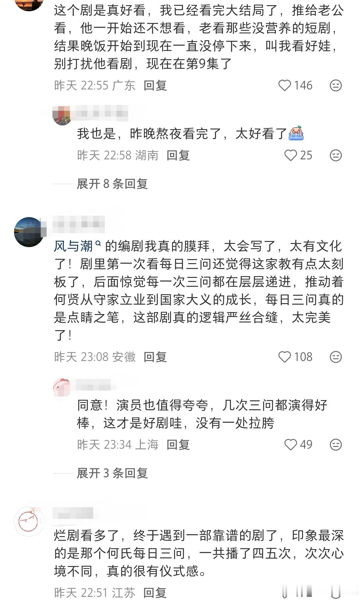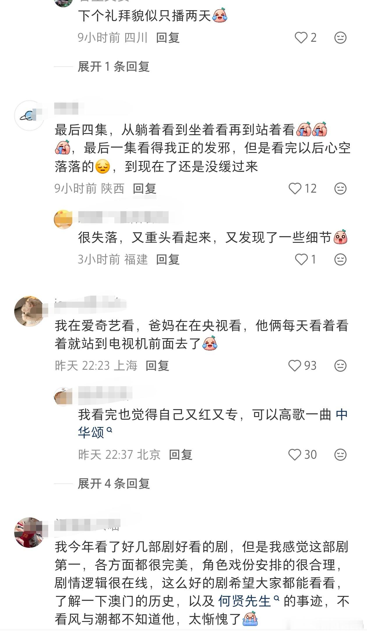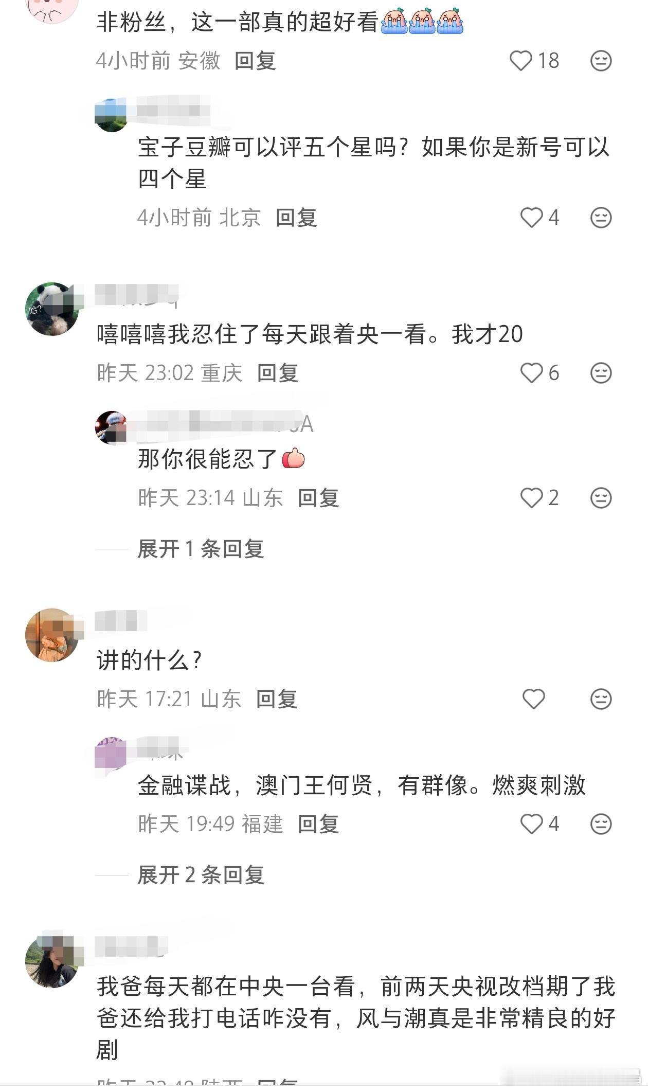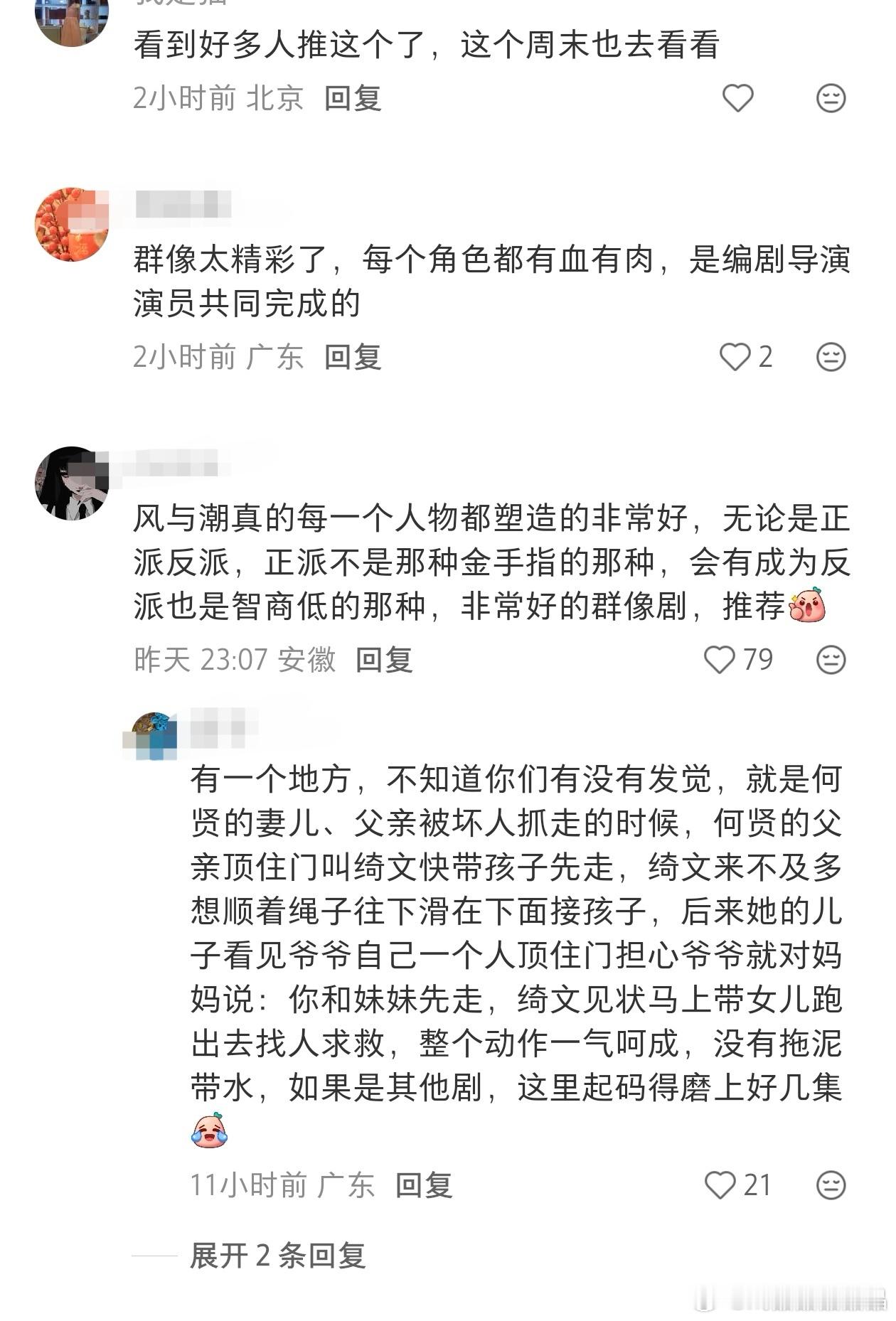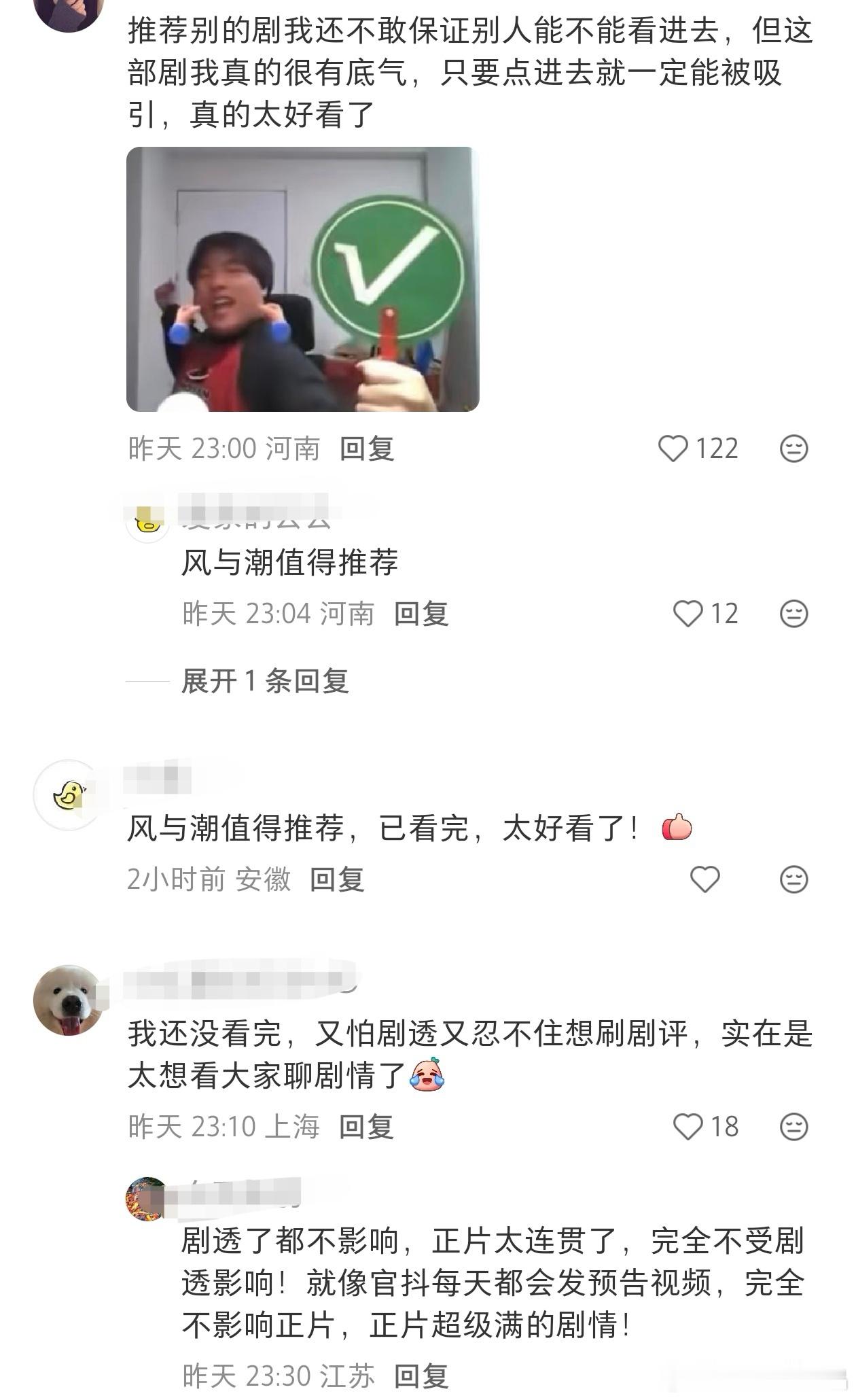 这个帖子下面评论区好多路人剧粉对电视剧风与潮 各种真心实意的夸夸夸,说好久没看到
