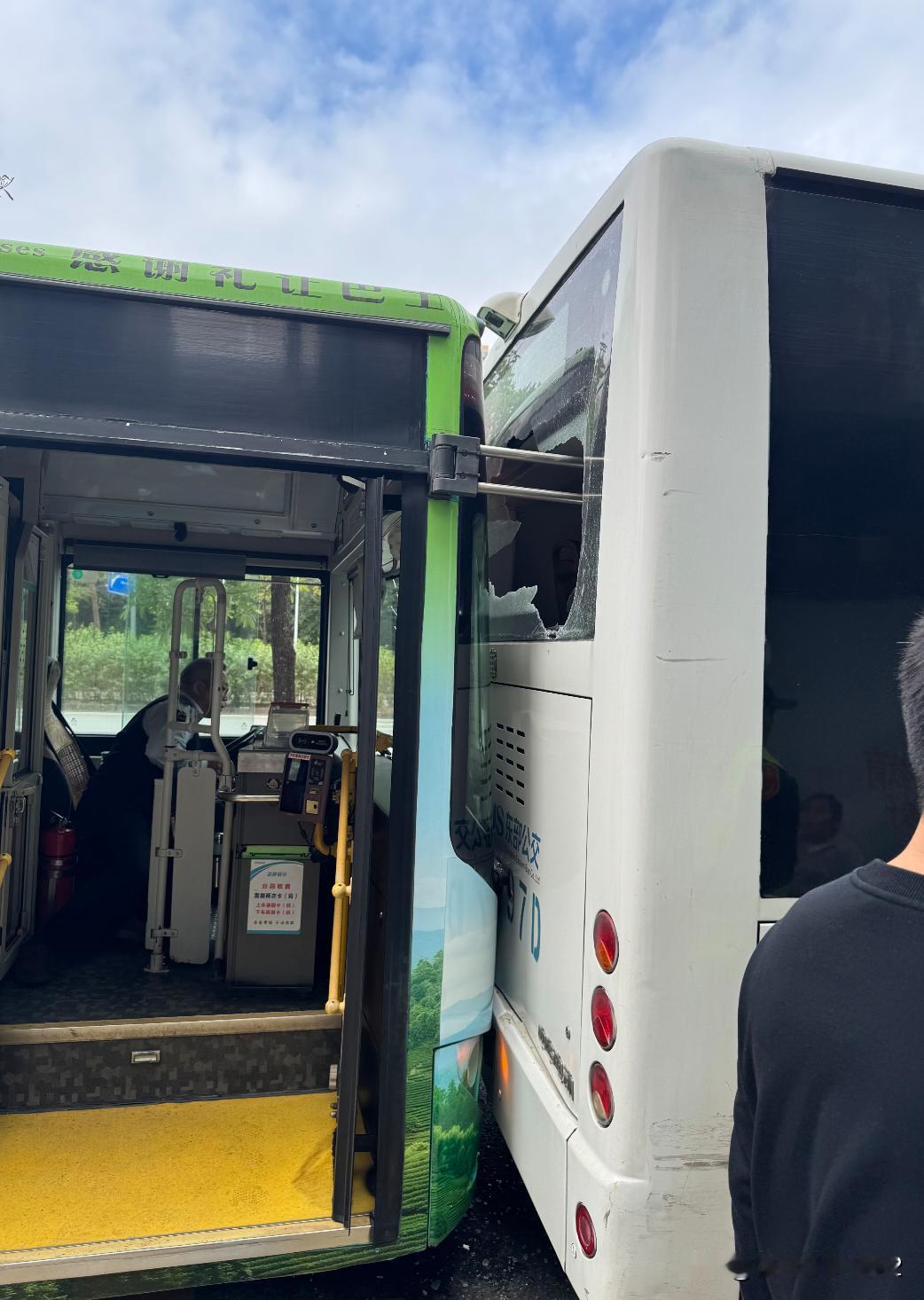 公交车不要坐最后面一排。 坐的公交车还没起步,后面的车进站追尾,以前总喜欢坐后面,特别是坐的长的路段,坐在后面视觉很高,看公交车内的电视也和广告也方便。 这次后面满了,前面居然是空的,坐到前面,坐前面没有受伤,快过年了希望大家都平安健康