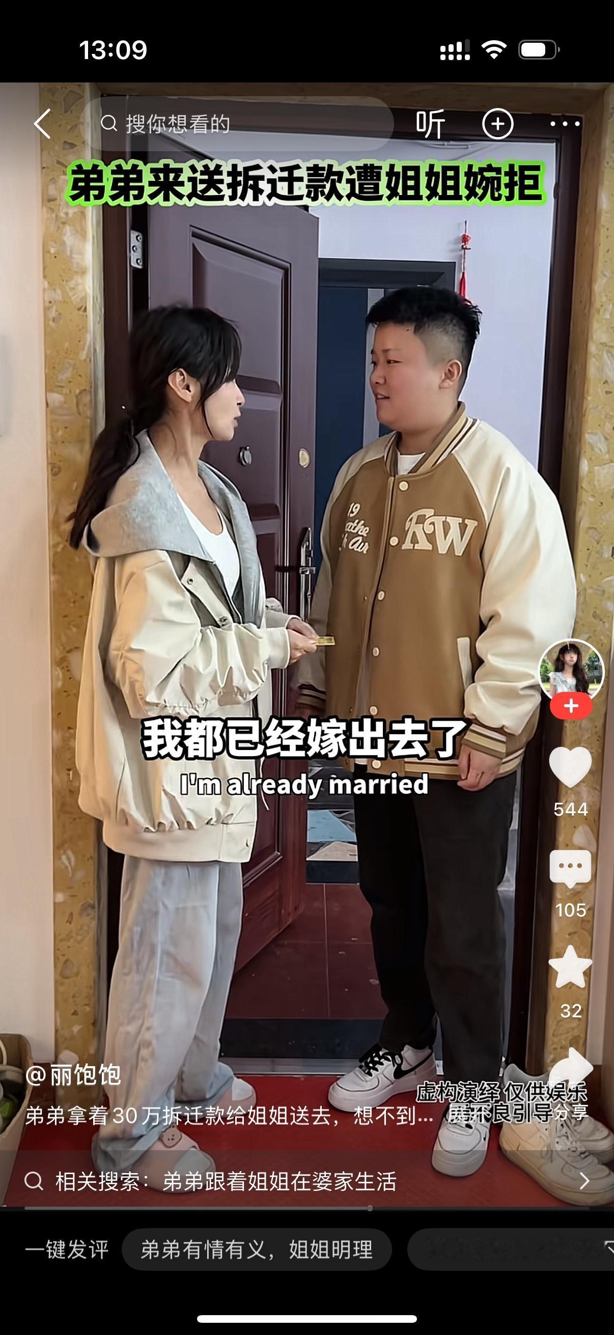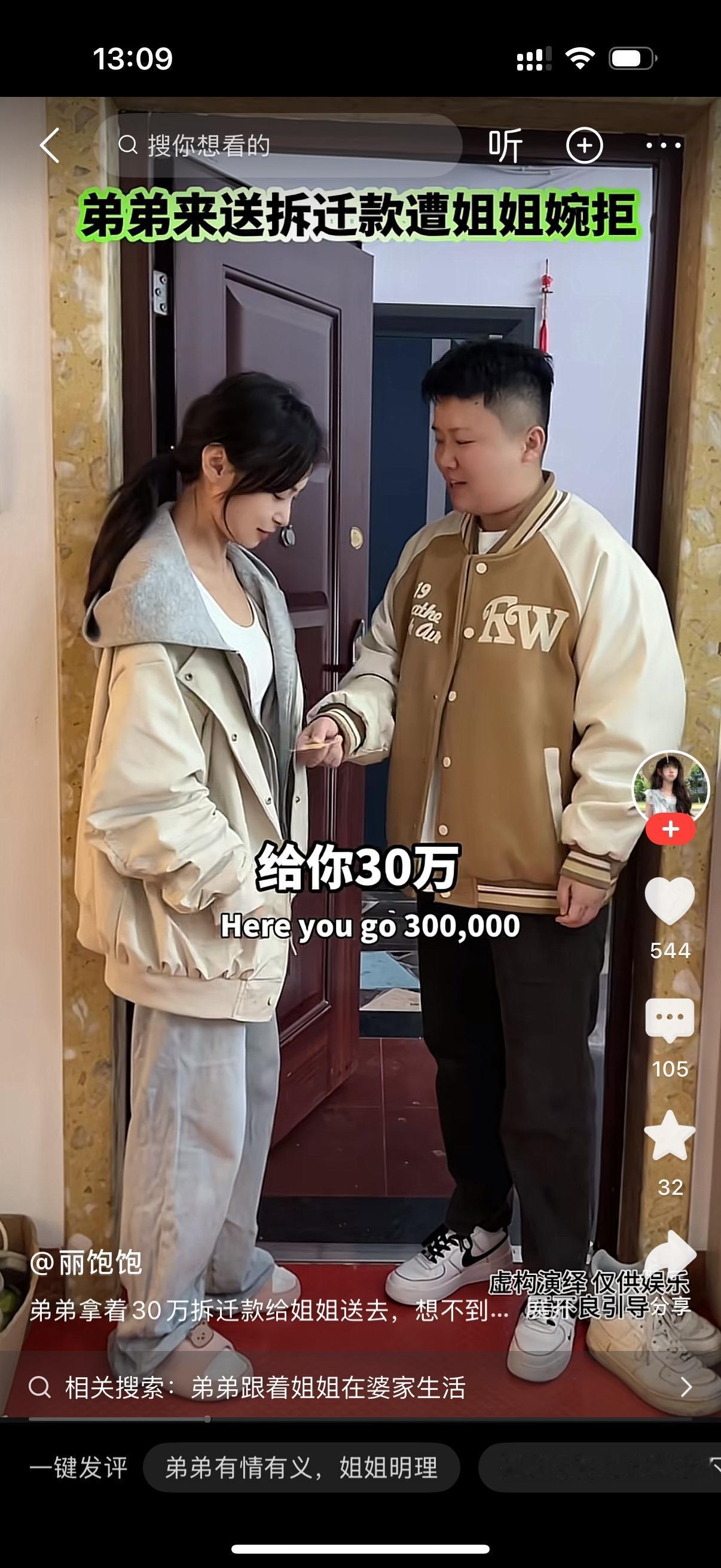 弟弟高兴地跑到姐姐家里跟她说,姐姐,家里拆迁总共赔了300万。姐姐也抑制不住内心的激动,笑了。弟弟掏出一张卡递给姐姐说,我和大哥商量了一下,给你30万,来,拿着。30万?姐姐很失落,说这个钱你拿回去吧。我都已经嫁出去了。弟弟二话没说就拿了回去,转身就走了。姐姐一直站在门口,心里五味杂陈。