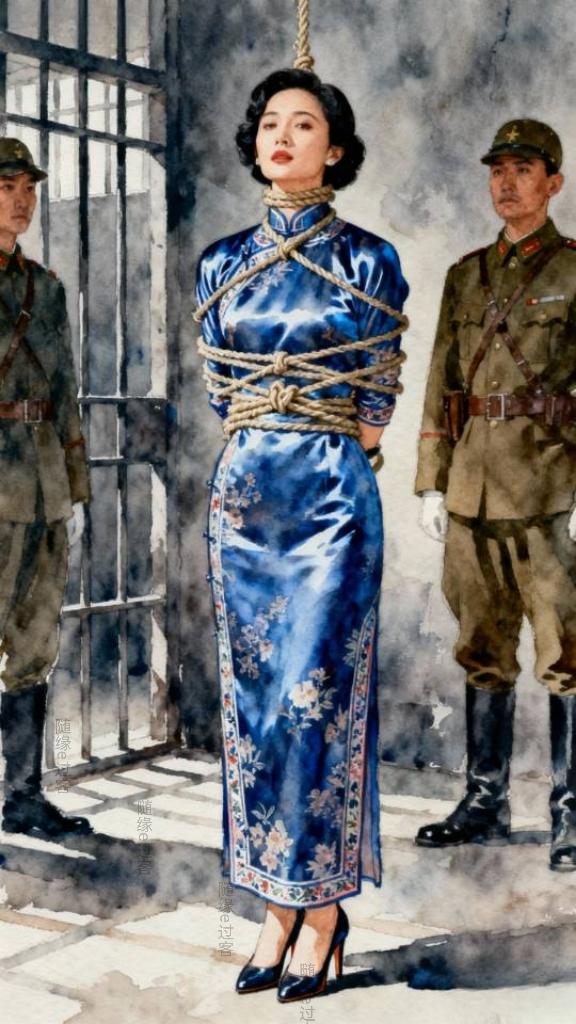 水彩画:二战影视剧镜头,在日军牢房里,审讯。水彩画 影视剧