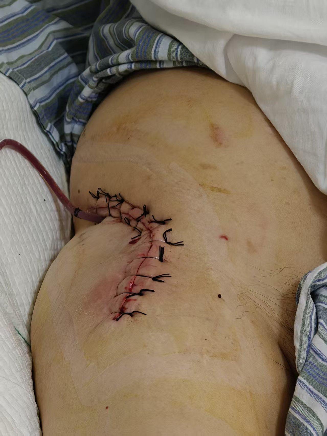 我爸74岁,2010年做髋关节置换术,2025年又做了翻修术。20厘米的刀口。他