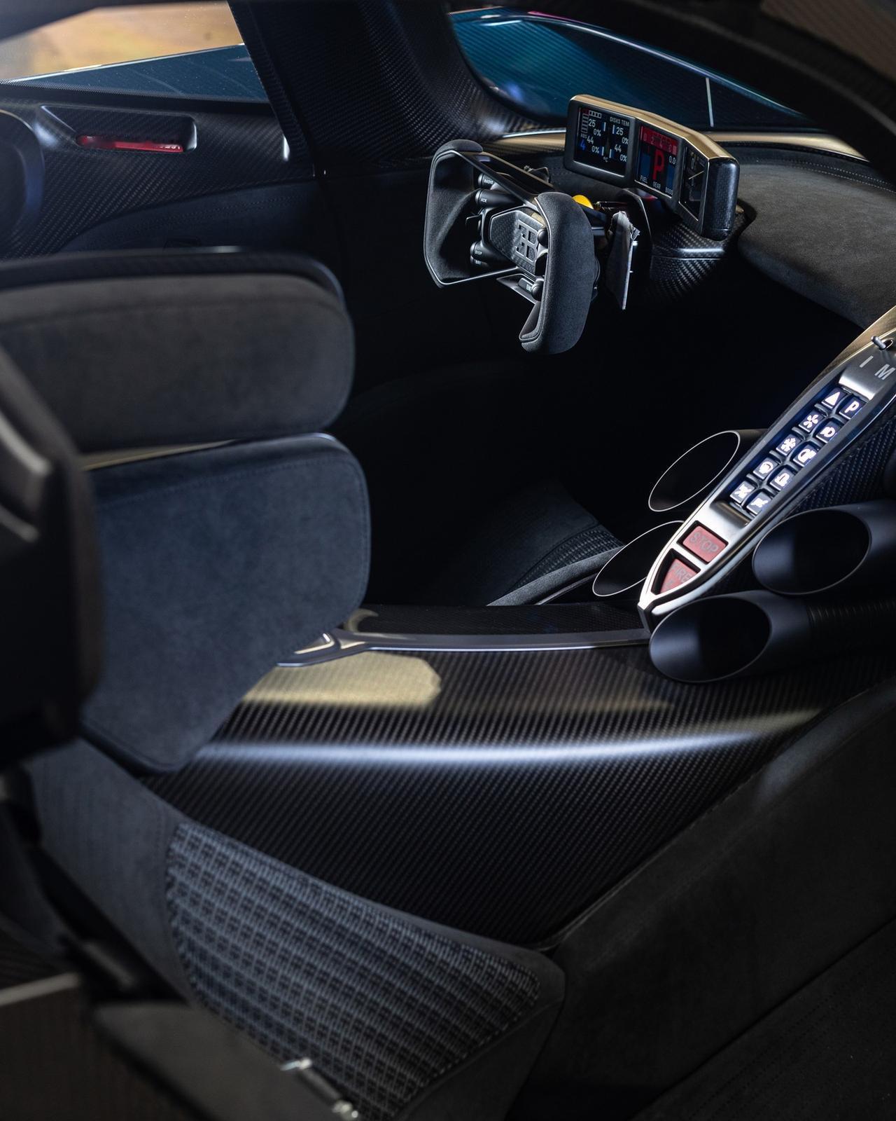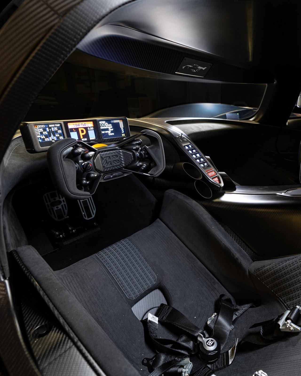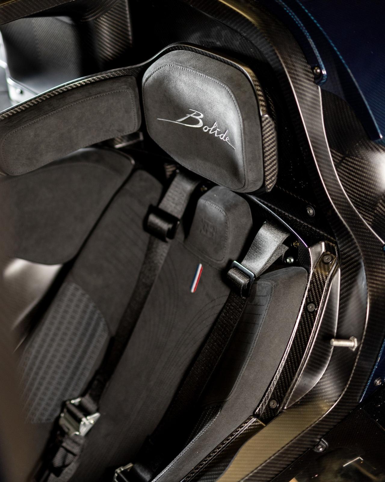 1600马力,0-100公里/小时加速仅需2.2秒。这就是布加迪Bolide。 布加迪Bolide是一款专注于赛道的超级跑车,代表着汽车性能的巅峰。该车仅限量生产40辆,搭载了布加迪迄今为止最强劲的W16发动机:一台8.0升四涡轮增压发动机,可输出1600马力。Bolide从0加速到100公里/小时仅需2.2秒,最高时速可达380公里/小时,功率重量比为0.91千克/马力。 车身采用青绿色碳纤维打造,搭配黑色碳纤维装饰,饰有法国国旗图案、定制空气动力学套件以及夜曲涂装的轮毂。内饰方面,白鲸黑阿尔坎塔拉材质与绣有Bolide字样的赛车座椅尽显原型车级别的精致细节,赛道铭牌则致敬了勒芒萨尔特赛道。
