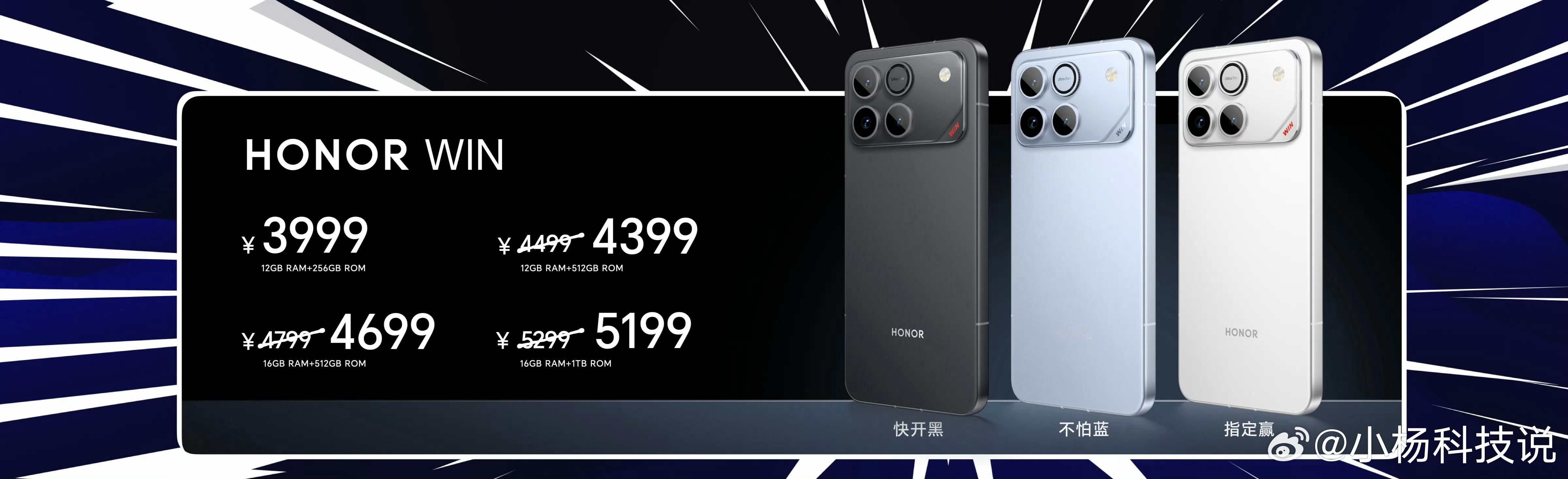 荣耀WIN荣耀WIN RT 12GB+256GB 2699(首销2599)16GB+256GB 2999(首销2899)12GB+512GB 309916GB+512GB 339916GB+1TB 3999荣耀WIN 12GB+256GB 399912GB+512GB 4499(首销4399)16GB+512GB 4799(首销4699)16GB+1TB 5299(首销5199)这个价格挺香的啊!大家觉得怎么样?发布即开售,感兴趣的可以入手了!荣耀WIN系列最强电竞手机发布