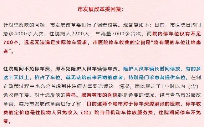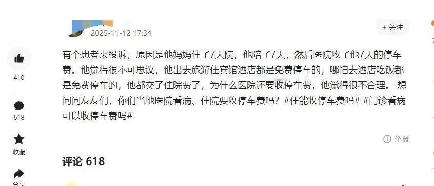 针对患者住院期间被收取停车费的争议,官方已明确回应:考虑到国内医院停车资源紧张,