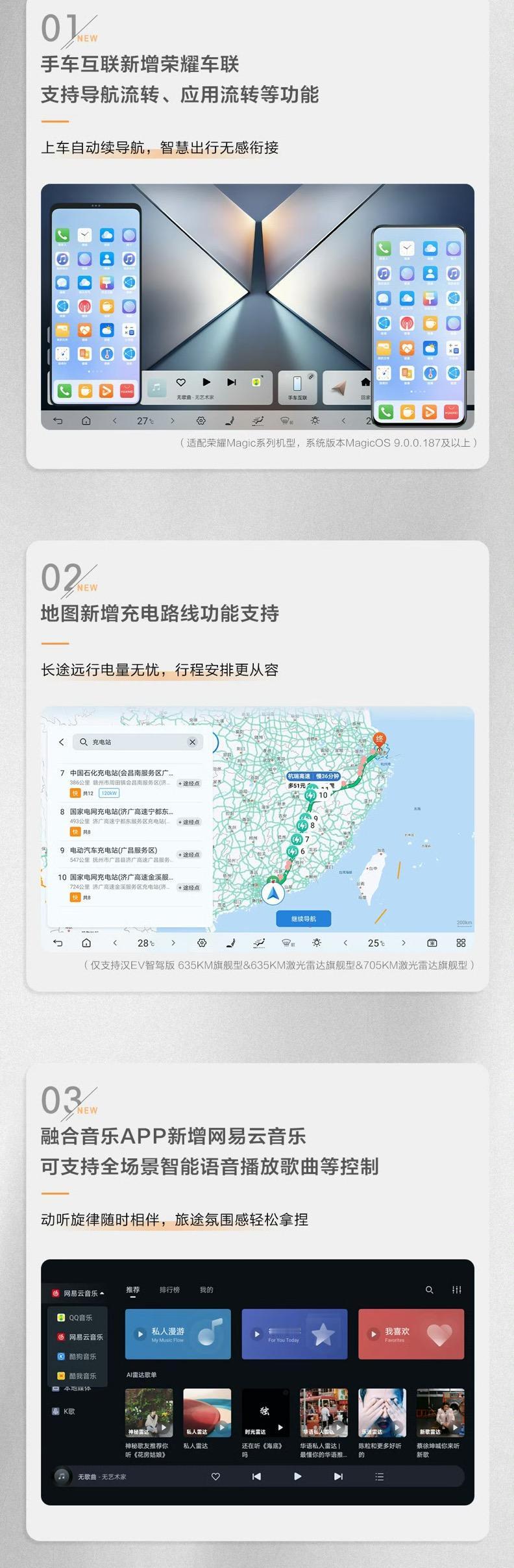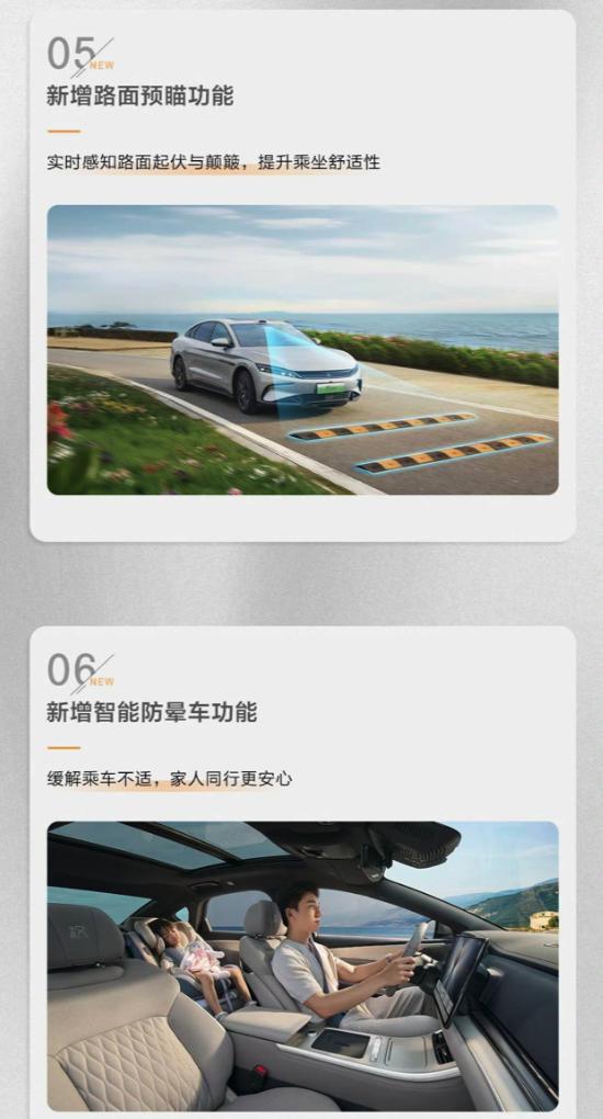 比亚迪汉长续航版首次OTA升级杀疯了—— 新增8项功能+优化7项[666] 新增路面预瞄:提前感知颠簸,烂路变“高铁体验” 智能防晕车模式:告别“坐车如坐过山车”,后排乘客狂喜 网易云音乐+充电路线导航:听歌充电两不误,续航焦虑退散 EV版CLTC续航635km/705km,DM-i版纯电245km,20万级续航+智能双在线 你觉得这波OTA里,哪个功能最戳你?来评论区聊聊~