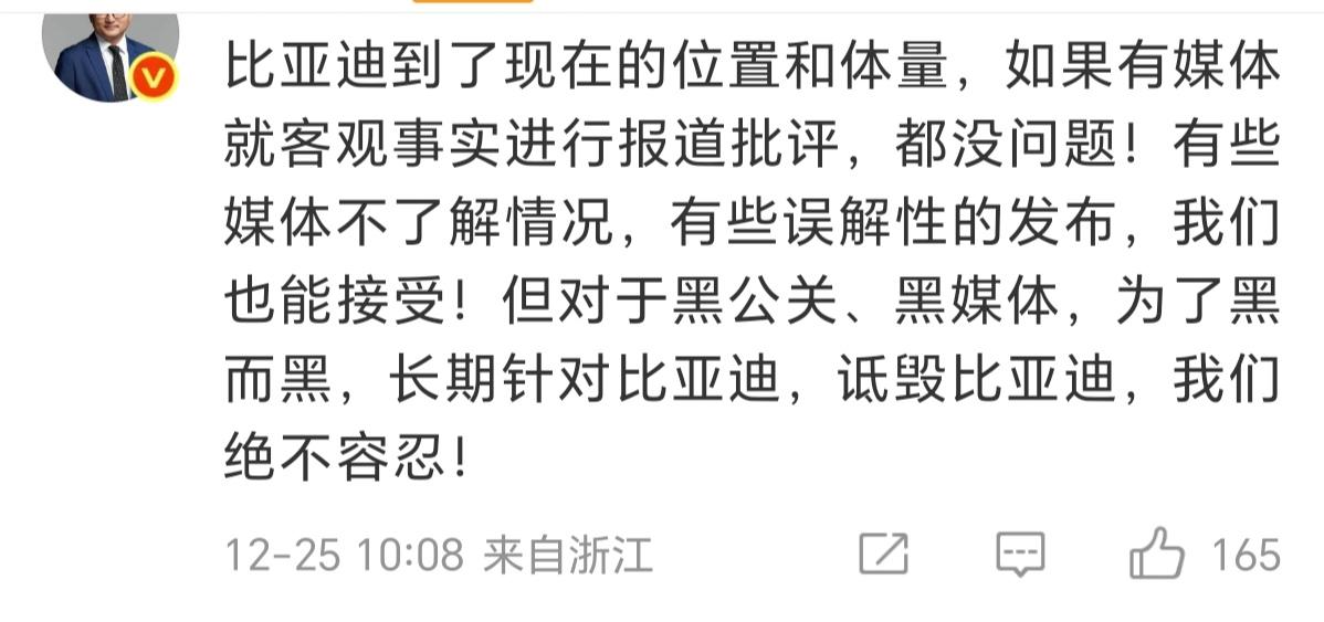 比亚迪起诉自媒体修车店老板,法院判维修店老板向比亚迪赔200万元。 之前这个所谓的维修工说有三家车企在告他,共700万。 起诉他之前,我是一个专业人士、维修店老板。起诉之后,我只是一个最底层的维修工。 据说他光讲一个车企的车,就讲了一百多集。一周五讲,这谁受得了? 其账号已禁止关注。 还有两家车企也要起诉他,可能判决也要来了。 听说他还建了2个群讲课,一个收800元,不知道真假。 不知道他后面有没有人在支持,应该一查到底。要不然,谁一个自媒体天天黑。 这个账号偷偷改名,龙哥变龙老师。