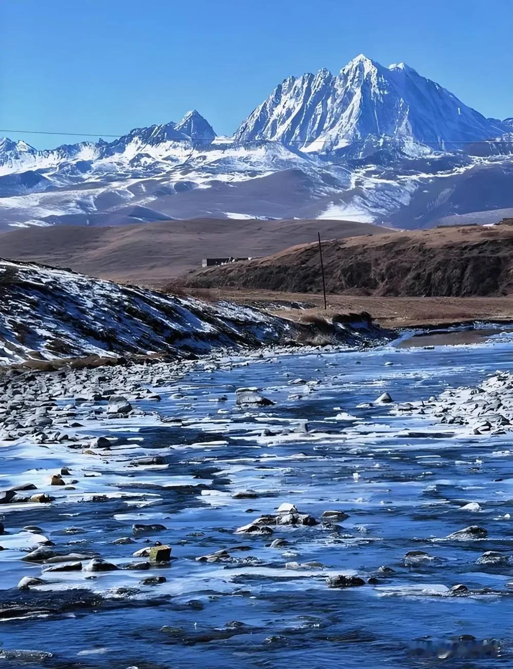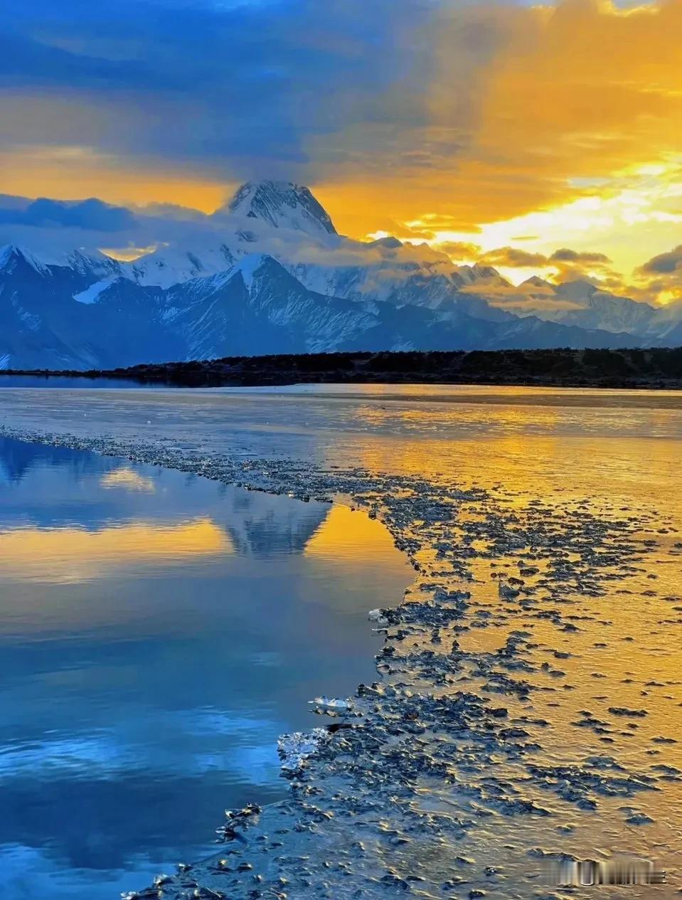 冷噶措在12月呈现出独特的蓝冰景观,湖面冻结成晶莹的蓝色冰块,冰层下隐约可见气泡与水草,阳光穿透时冰面泛着宝石般的光泽,与远处的贡嘎雪山相映成趣,宛如“蓝色琥珀”。‌冬季天气晴好时,冷噶措能完美倒映海拔7556米的贡嘎主峰,形成“贡嘎之眼”的奇观,是拍摄雪山倒影、日照金山和星空的绝佳地点。‌ 冬季的冷嘎措,湖面会凝结厚厚的冰层,呈现出深蓝色的色调。当日落时分,天空也被染上了一层深蓝,与湖面的冰层相映成趣,共同构成了一个蓝色的梦幻世界。而冰面上纵横交错的裂纹,更是为这片蓝色的湖面增添了一抹神秘的气息。
