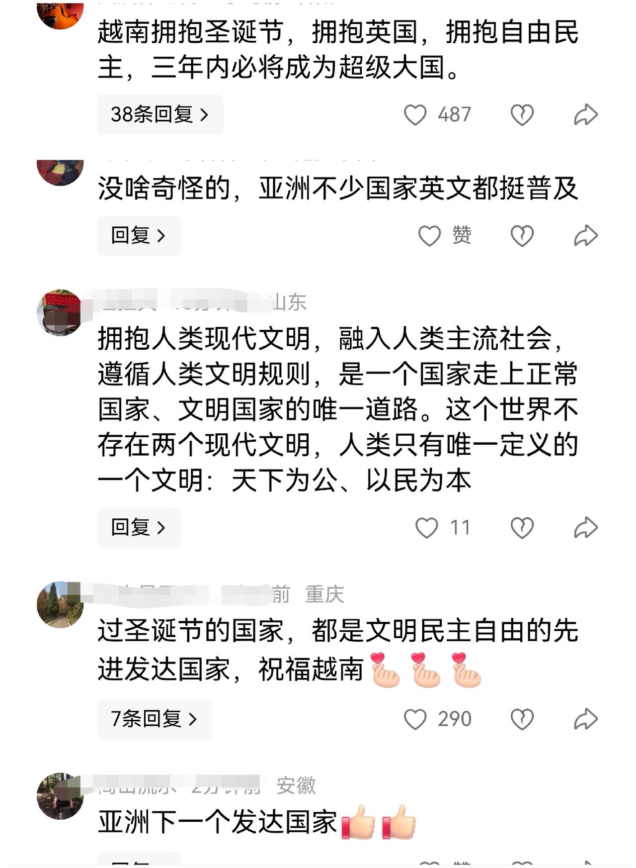 越南圣诞节大火,成了越南人的狂欢日。 今年的圣诞节,整个越南街区到处都是圣诞树,这不仅仅是越南人的狂欢,更是国内越吹的狂欢,似乎拥抱圣诞节,就拥抱文明了,就短时间内可以变发达国家了。 越南作为曾经的殖民地,拥有700万教徒,成为仅次佛教的第二大宗教,占总人口的7%。 近年来,随着越南的革新,越南积极靠向西方,英语成为第二语言,经济也取得了不少成就。圣诞节在越南已演变为一个超越宗教界限的全民性文化节日,氛围非常浓厚 。而春节仍然是越南最大、最隆重的传统节日。 越南的圣诞节氛围,更多的是类似我们90年代,2000年时期的那种商业氛围,商家积极推出促销活动,把圣诞节打造成一个年轻人的消费节日。 作为世界上最大的宗教,基督教拥有24亿信徒,约占全球人口1/3,然而除了传统老牌殖民国,南北美洲、非洲、亚洲的许多国家一样拥抱了基督教,也不见得他们拥抱了文明,经济有多发达。 所以越吹们真的是一群特别会自嗨的,没有逻辑的群体。 大家讨论下,干了坏事然后去祈祷,祈求原谅,就是文明吗?