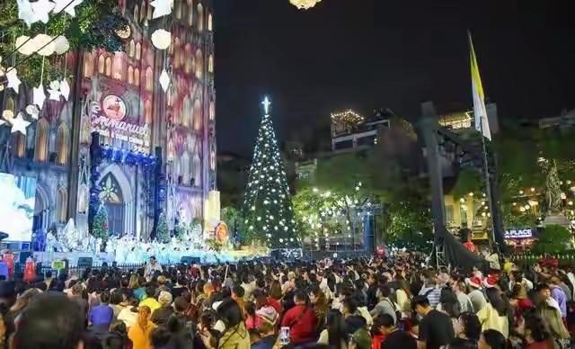 越南圣诞节大火,成了越南人的狂欢日。 今年的圣诞节,整个越南街区到处都是圣诞树,