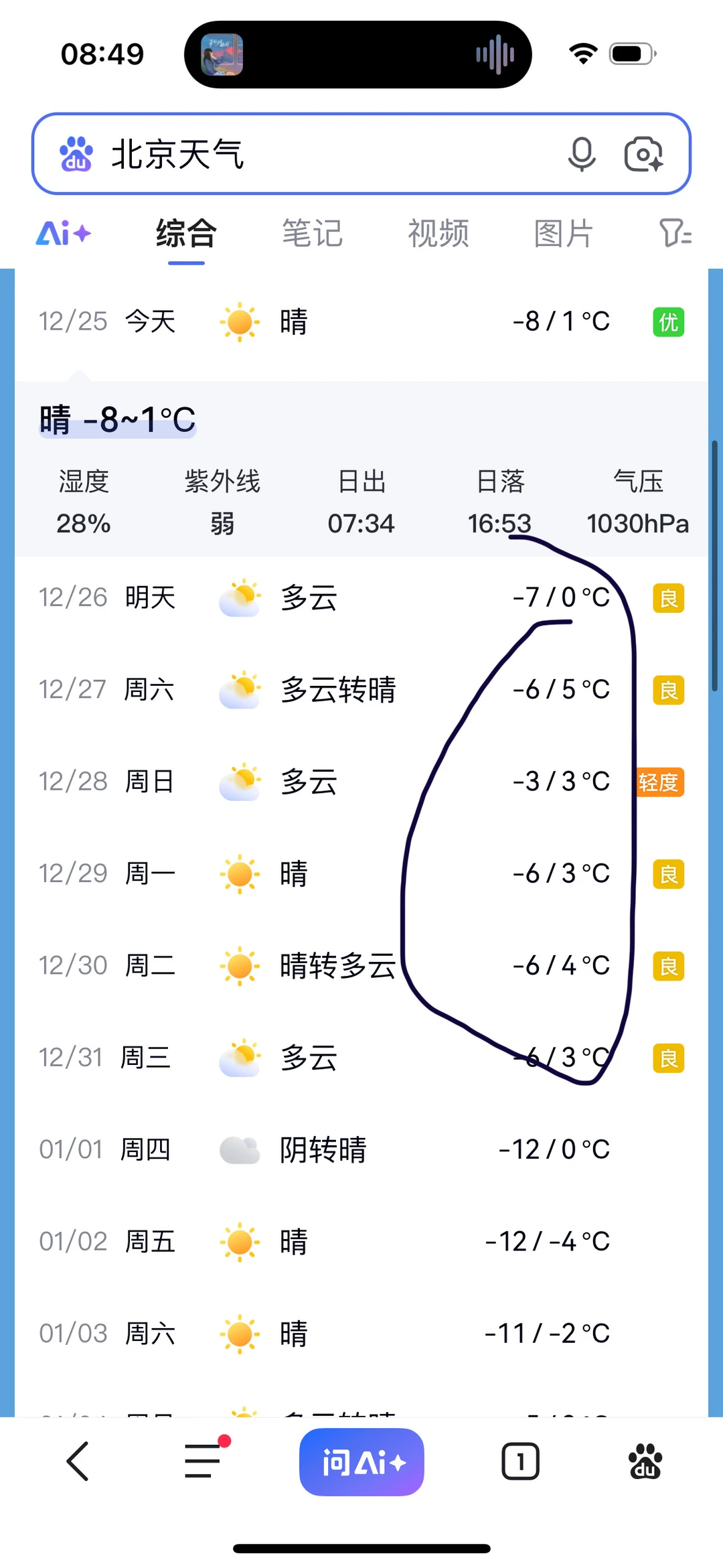 图3/4,是最近北京的天气温度