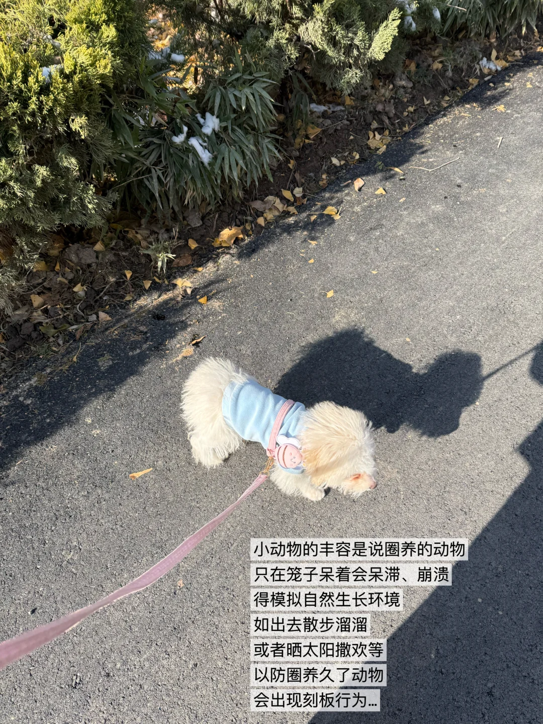 听姐妹聊起养小动物的“丰容”:圈养的动物只在笼子呆着会呆滞、崩溃🐶得模拟自然生长环境,比如把食物放高挑逗,给玩耍的道具或者晒太阳撒欢等,以防圈养久了动物会出现刻板行为。